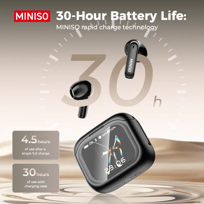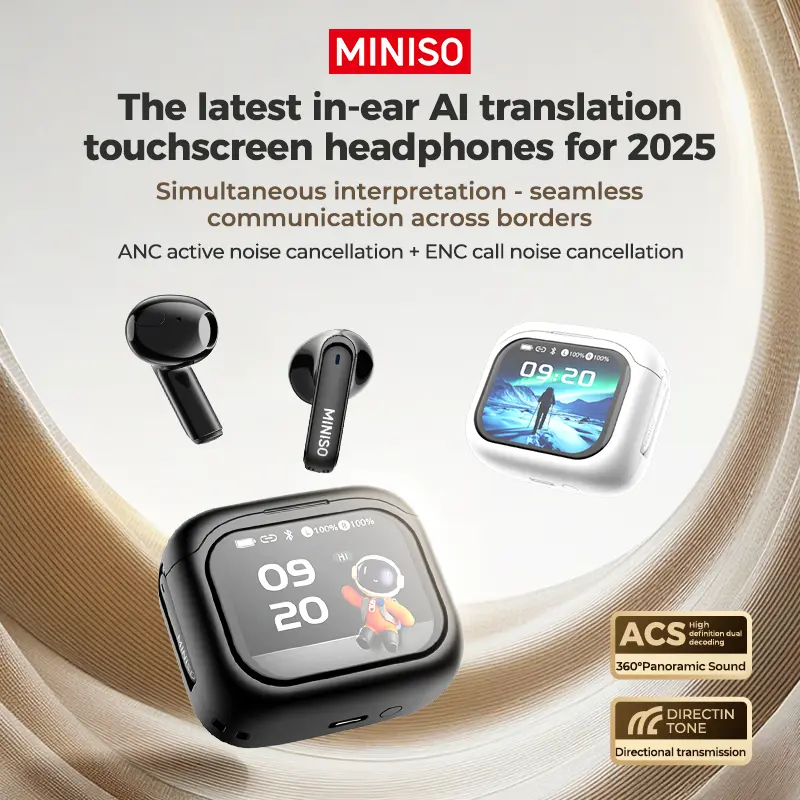MINISO 103 AI Headset Translates 134 Languages Wireless Noise Cancelling Earbuds with Smart Screen Case, Clear Calls, App Translation, 30H Battery, Bluetooth 6.0, IPX5