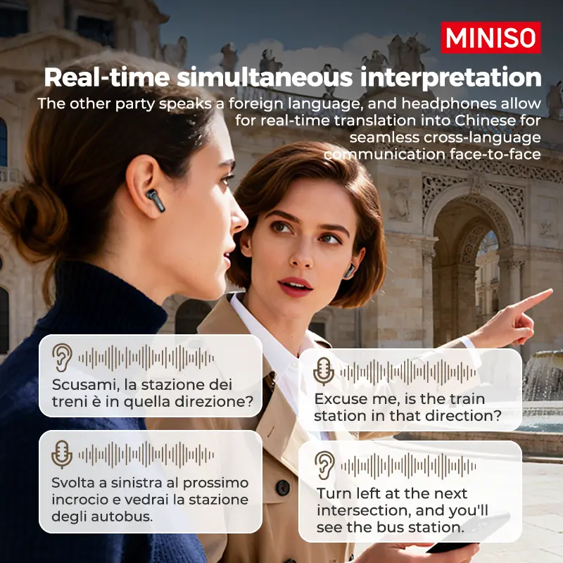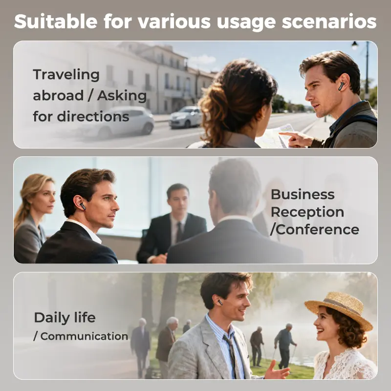 ·When you need it, the companion app provides real-time translation support for basic conversations, helping you communicate more easily while traveling or interacting across languages.
