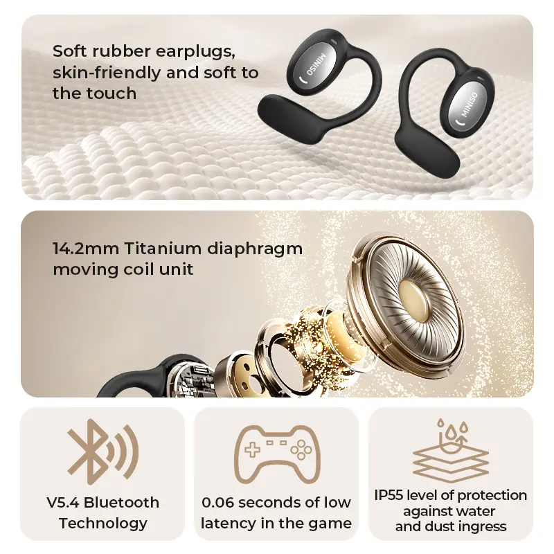 Sweat? Rain? No problem. With IPX5 waterproofing and an IP55 rating against dust and splashes, they’re built to handle your toughest workouts. The 40° ear hook style keeps them secure, and the soft, skin-friendly rubber earplugs mean you can wear them for hours without discomfort. Plus, noise-canceling tech and call noise reduction mean your calls come through crystal clear—even in noisy gyms or busy streets.