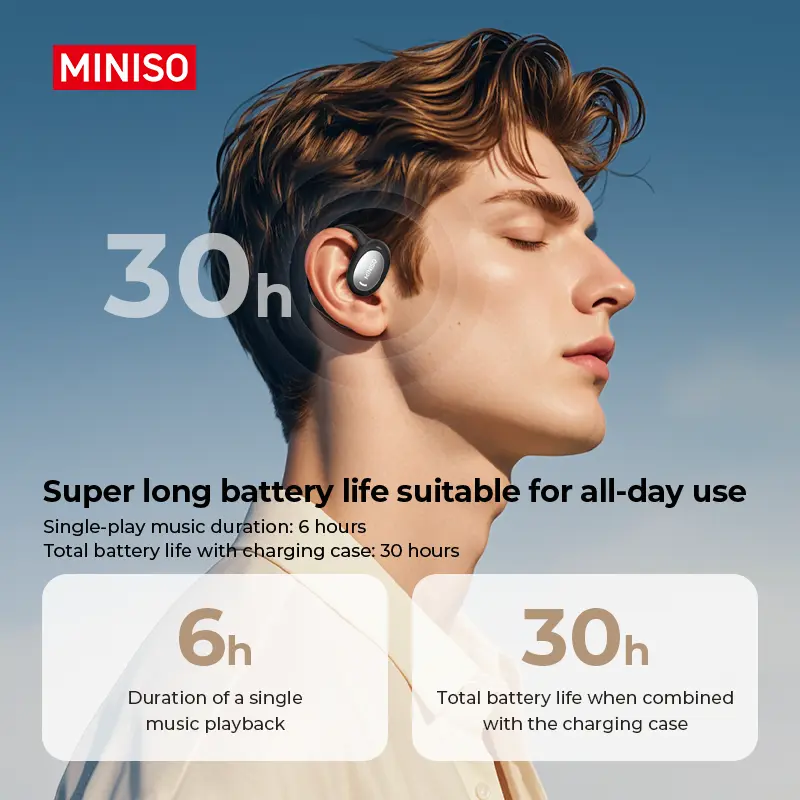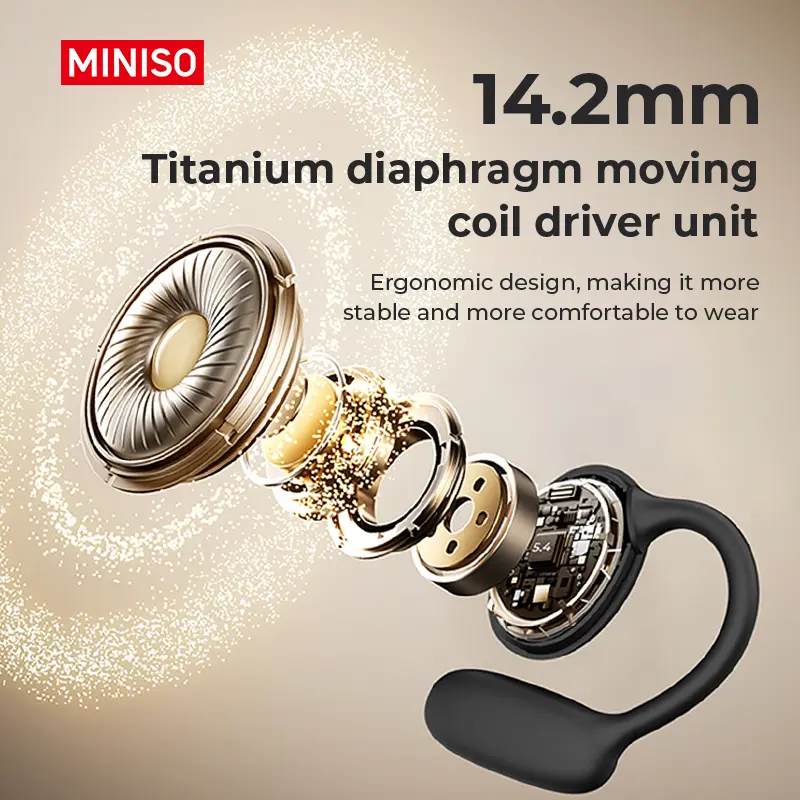 Ever been mid-workout when your earphones just can’t keep up? Meet the MINISO 181 OWS Bluetooth 6.0 sports earphones—your new workout buddy. These lightweight earphones (only 9.4g!) offer HIFI sound thanks to a 14.2mm titanium diaphragm, delivering crisp highs and powerful lows with dynamic low-frequency compensation. With Bluetooth 5.4, enjoy fast, stable connections and low power consumption, plus ultra-low latency of 0.06 seconds for gaming or videos. The IP55 waterproof rating means sweat or rain won’t slow you down, while noise cancellation and a built-in mic keep calls crystal clear. Soft rubber earplugs and ergonomic design ensure comfort during long sessions. Control volume, calls, and music easily with smooth touch controls. The 30-hour battery life with charging case means you’re powered all day long. Note: The charging case isn’t waterproof, so keep it dry. In the box, you get the earphones and charging case, ready to rock your active lifestyle. Ready to boost your sound and stay connected? Grab your MINISO 181 earphones and feel the difference!