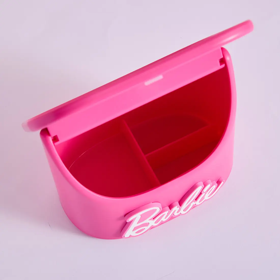 Level up your vanity game with the MINISO x Barbie Multi-Functional Storage Vanity Mirror! This iconic hot pink piece doubles as a storage spot for lip glosses, hair ties, or tiny accessories. The Barbie-branded design adds a playful pop to any desk, counter, or dorm setup. The foldable mirror is perfect for quick touch-ups on the go.
