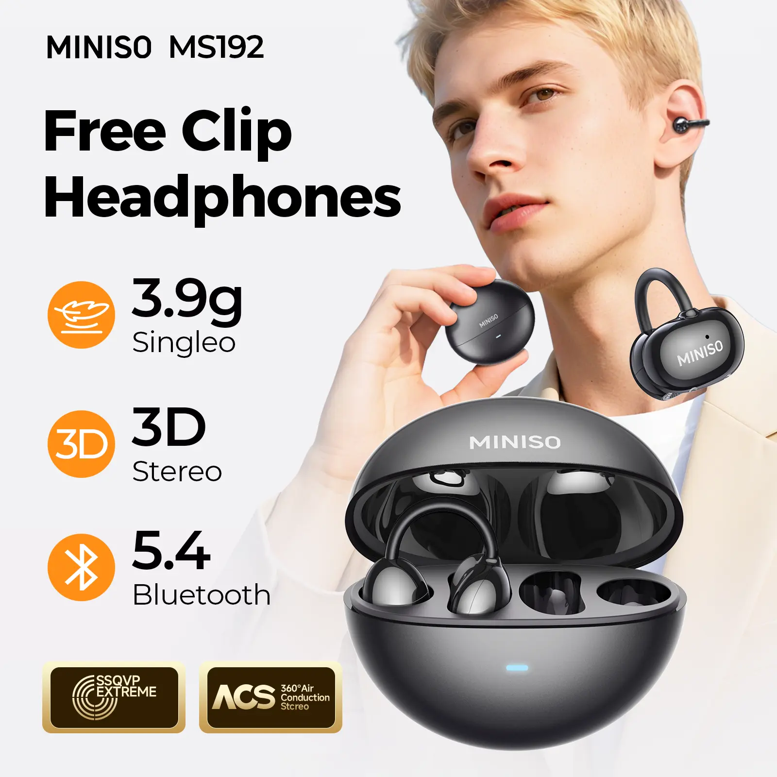5. MINISO ChicClip Clip-on Design Earphones, Upgraded Panoramic Sound Headset, Comfortable Wearing & IPX5 Waterproof Sports Earbuds for Work, Fitness
