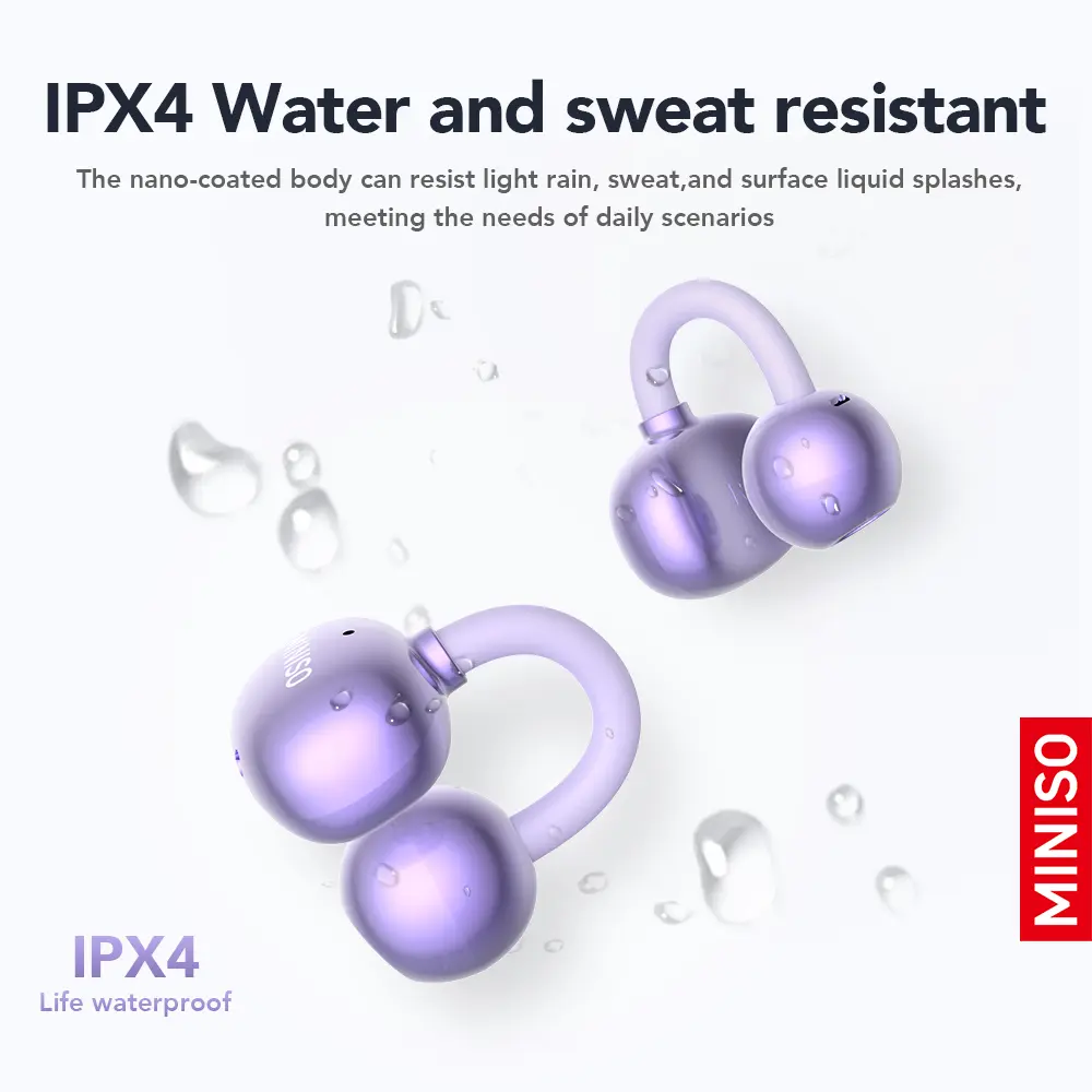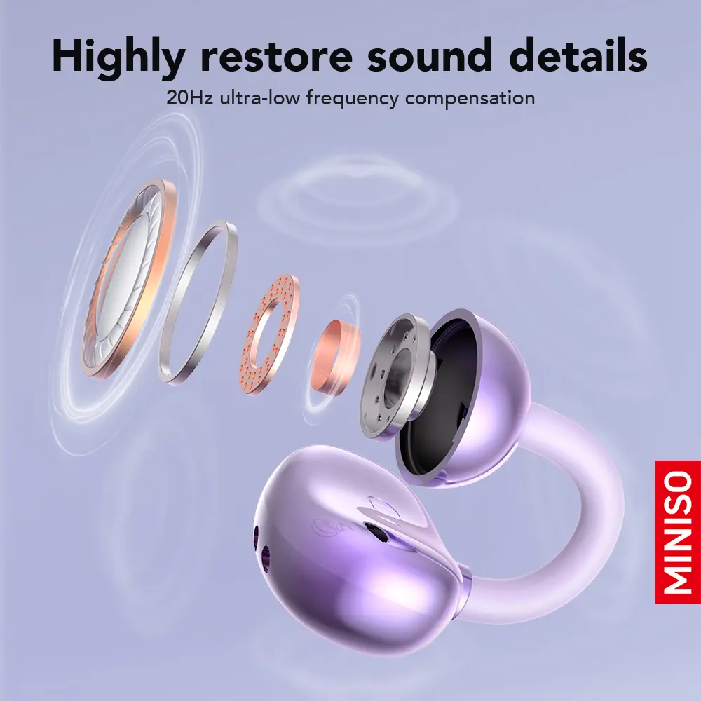 Ever wish your wireless headphones were as fun as they are functional? The MINISO MS199 Clip On Ear Headphones bring a splash of color and convenience with a full-color touch screen charging case featuring cute emoticons to brighten your day. Designed for comfort, these open ear clip headphones fit snugly without the usual earbud squeeze, perfect for long listening sessions.