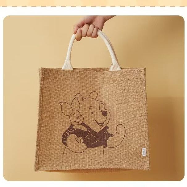The MINISO Disney Winnie The Pooh Series Large-Capacity Jute Tote Bag is a printed shoulder shopper. It's a versatile daily commute accessory for women. Perfect for Holiday & Holiday hauls, this tote bag combines functionality with a charming design. 🎄