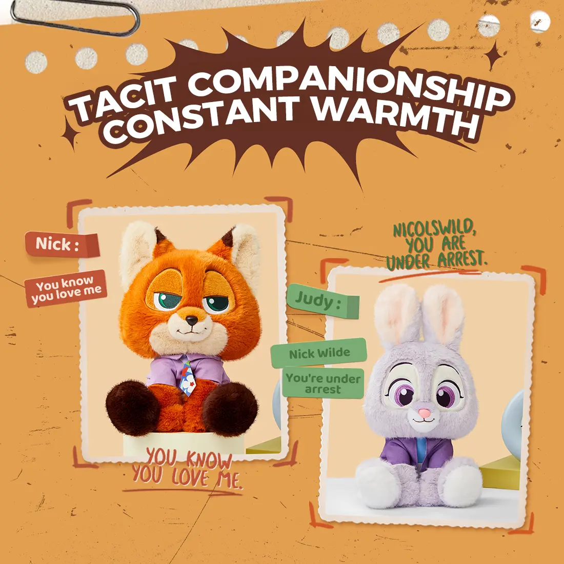 ·Iconic Zootopia Characters: Choose from Nick Wilde’s mischievous pose or Judy Hopps’ determined, friendly sitting position.