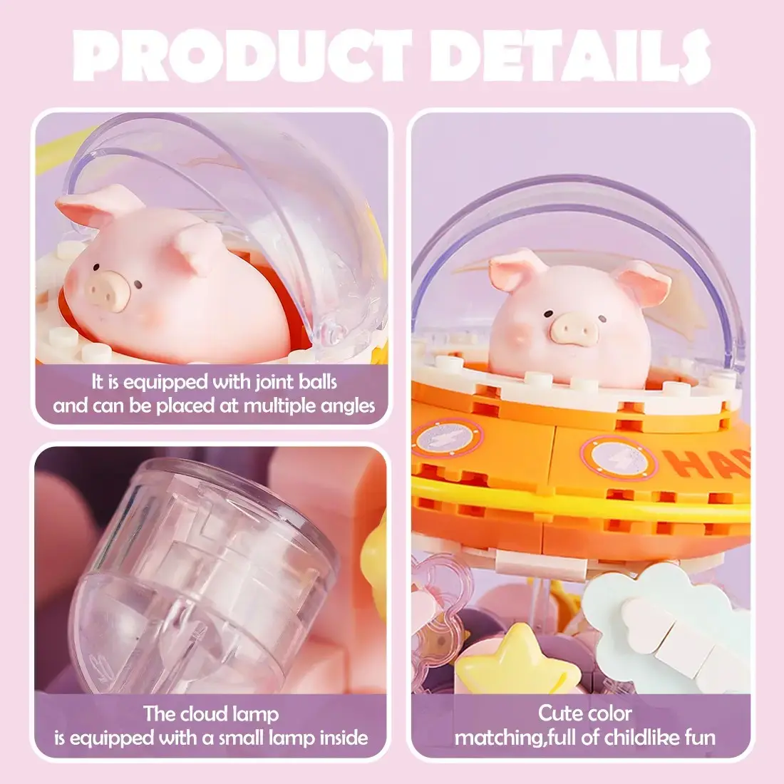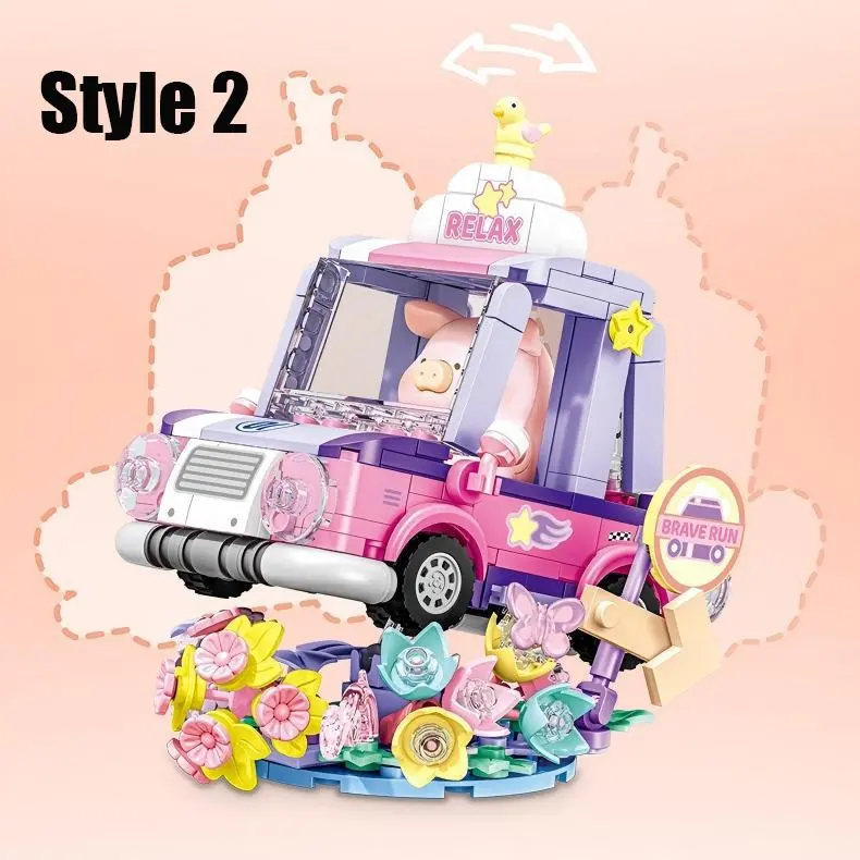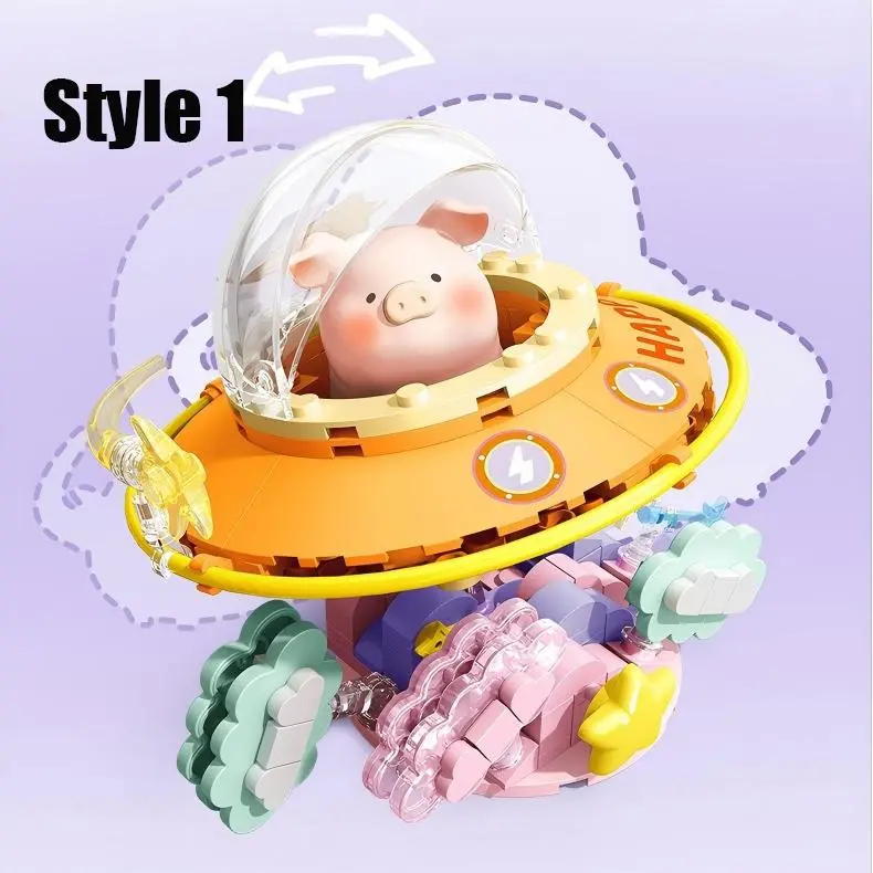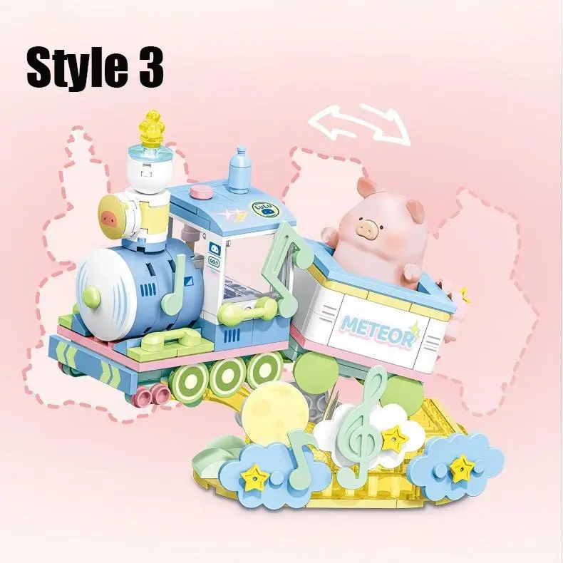 ·This MINISO LULU Pig-Angel Pig Series building blocks set is perfect for creative play. It includes various vehicles, spaceships, trains, and floats. Ideal for holiday, Christmas, and New Year gifts.