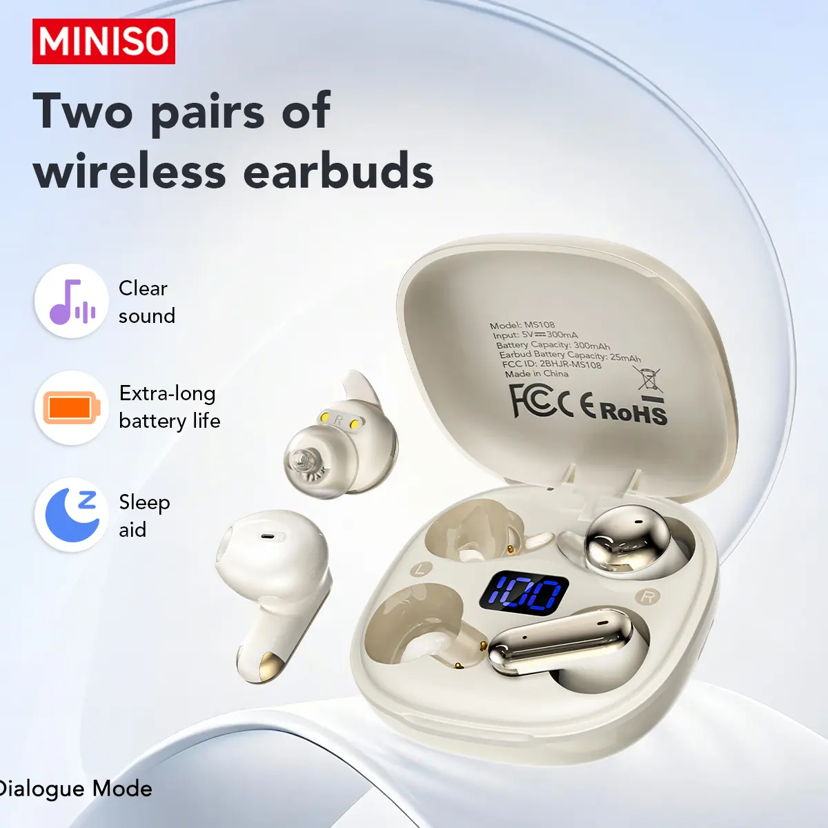 The MINISO MS108 Wireless Bluetooth Earphones are a versatile choice for daily use, sports, and travel. With their miniature and invisible design, waterproof capabilities, and translation capabilities, these earphones are perfect for those with an active lifestyle. The package includes 2 pairs of earbuds for extra options.
