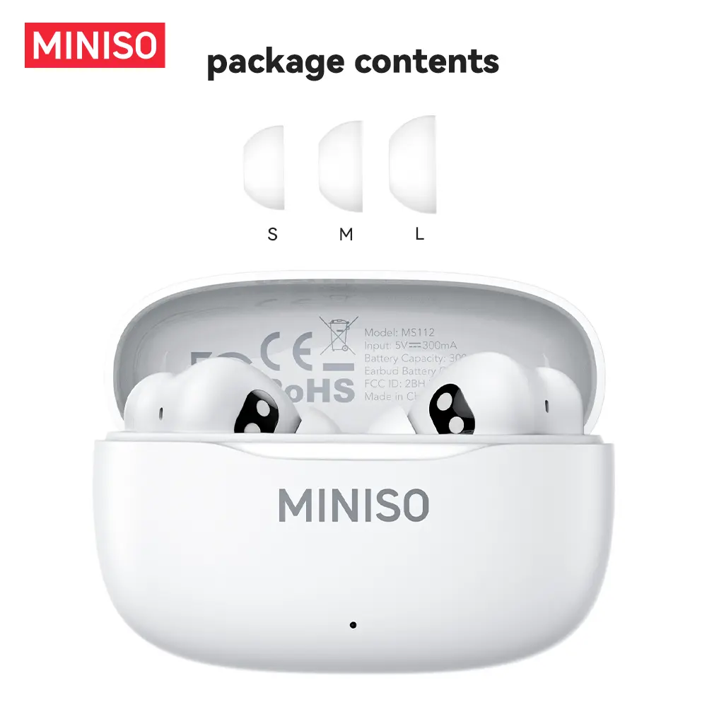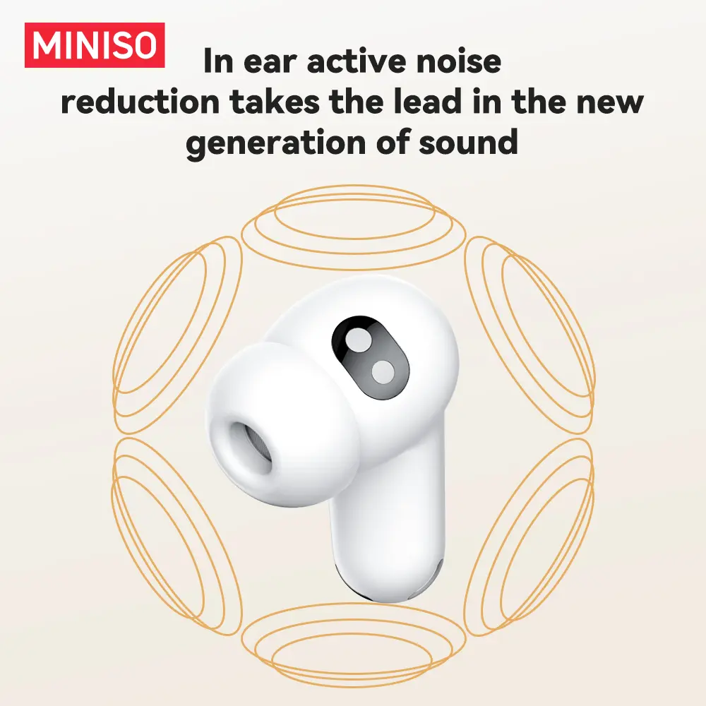 5. MINISO MS112 Wireless Earphones: Active noise cancellation, suitable for office, sports, studying, and audio calls, in-ear Bluetooth earphones, high-fidelity sound quality, USB-C charging.