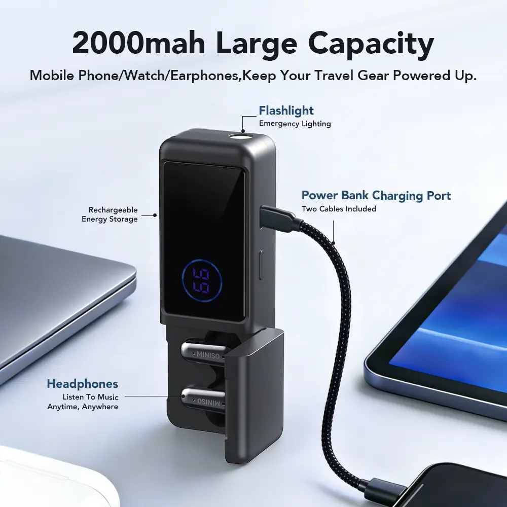 These earbuds are a total game-changer! The sound quality is amazing, and the 2000mAh power bank is a lifesaver for my hikes. The flashlight is super bright too!