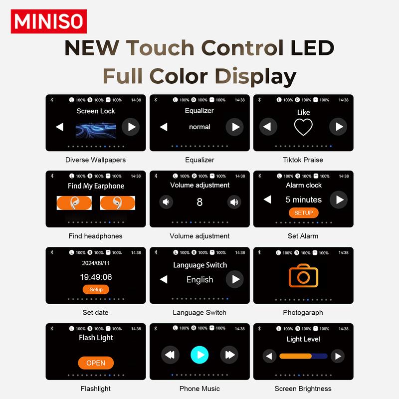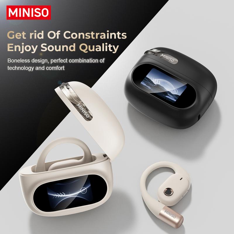 The MINISO MS150 hanging ear Bluetooth headset features a sleek and modern design with touch color screen control for a seamless, multifunctional experience. The unique smart charging case gives you full access to all key functions without needing to open any smartphone app—just touch the screen on the charging case for instant control.