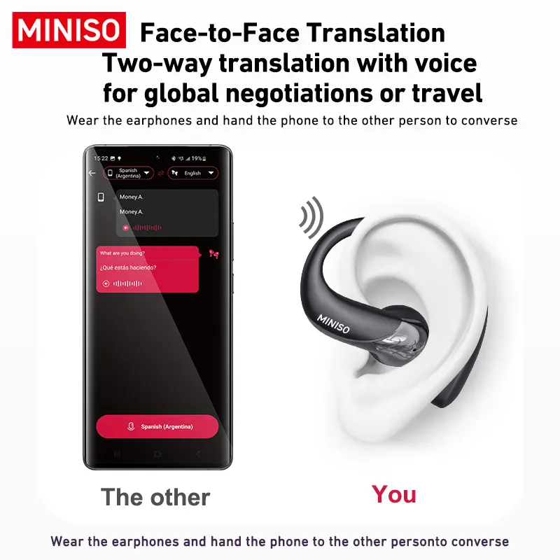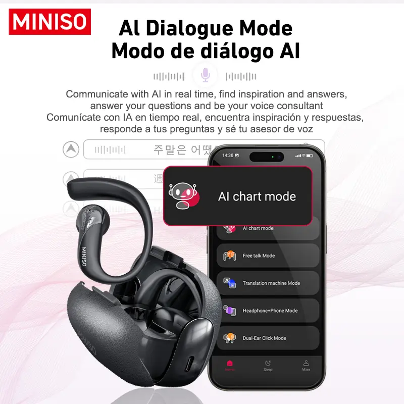 #Auriculares #de traducción #Miniso MS200-AI, #Bluetooth 6.0, #auriculares inalámbricos de alta fidelidad, clasificación de resistencia al agua IPX5, micrófono con cancelación de ruido, auriculares