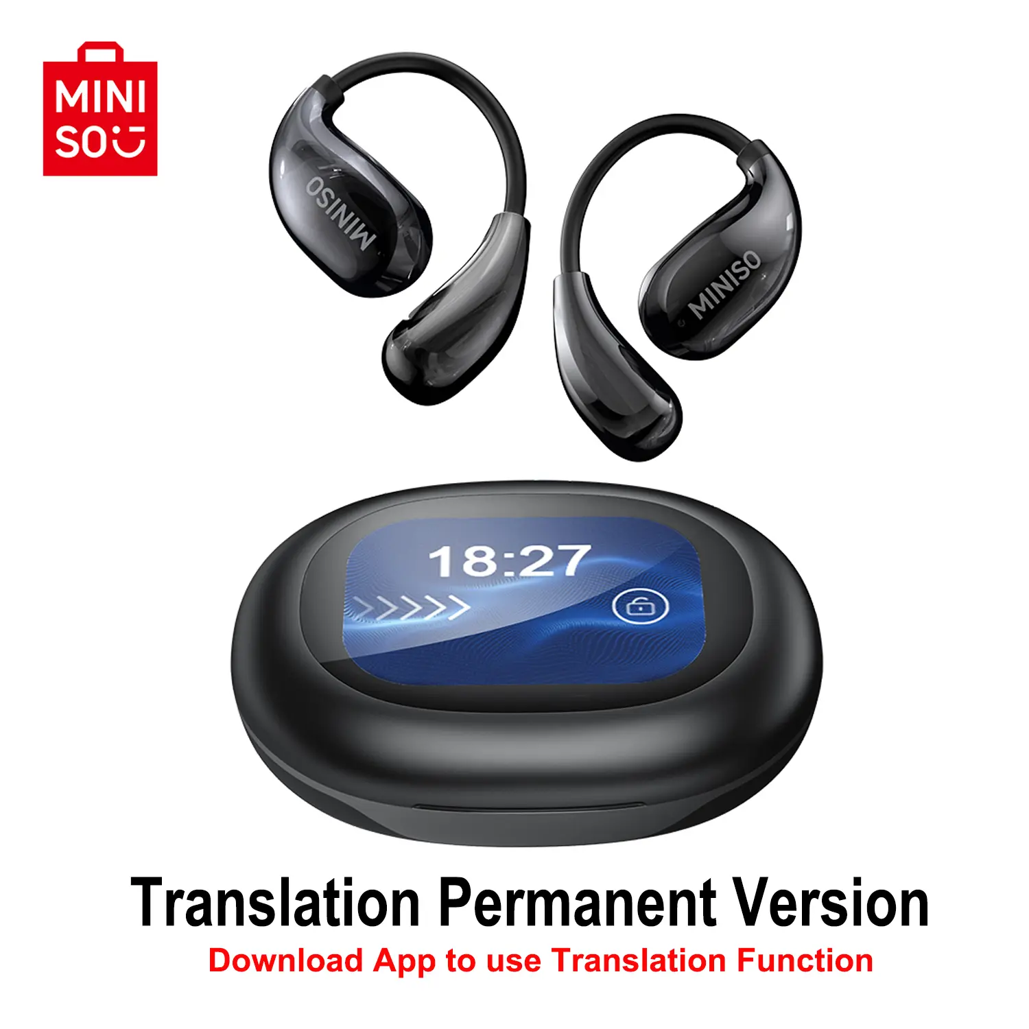 5. MINISO MS189 Translator Wireless earbuds Open Ear Bluetooth Earphones,Stereo HIFI Sound Earphones,LED Lights Touchscreen,Up to 48 Hours Power with Case,Ergonomic Ear Hooks,Ultra-Comfort Wireless Headphones,For Gym Running Workout