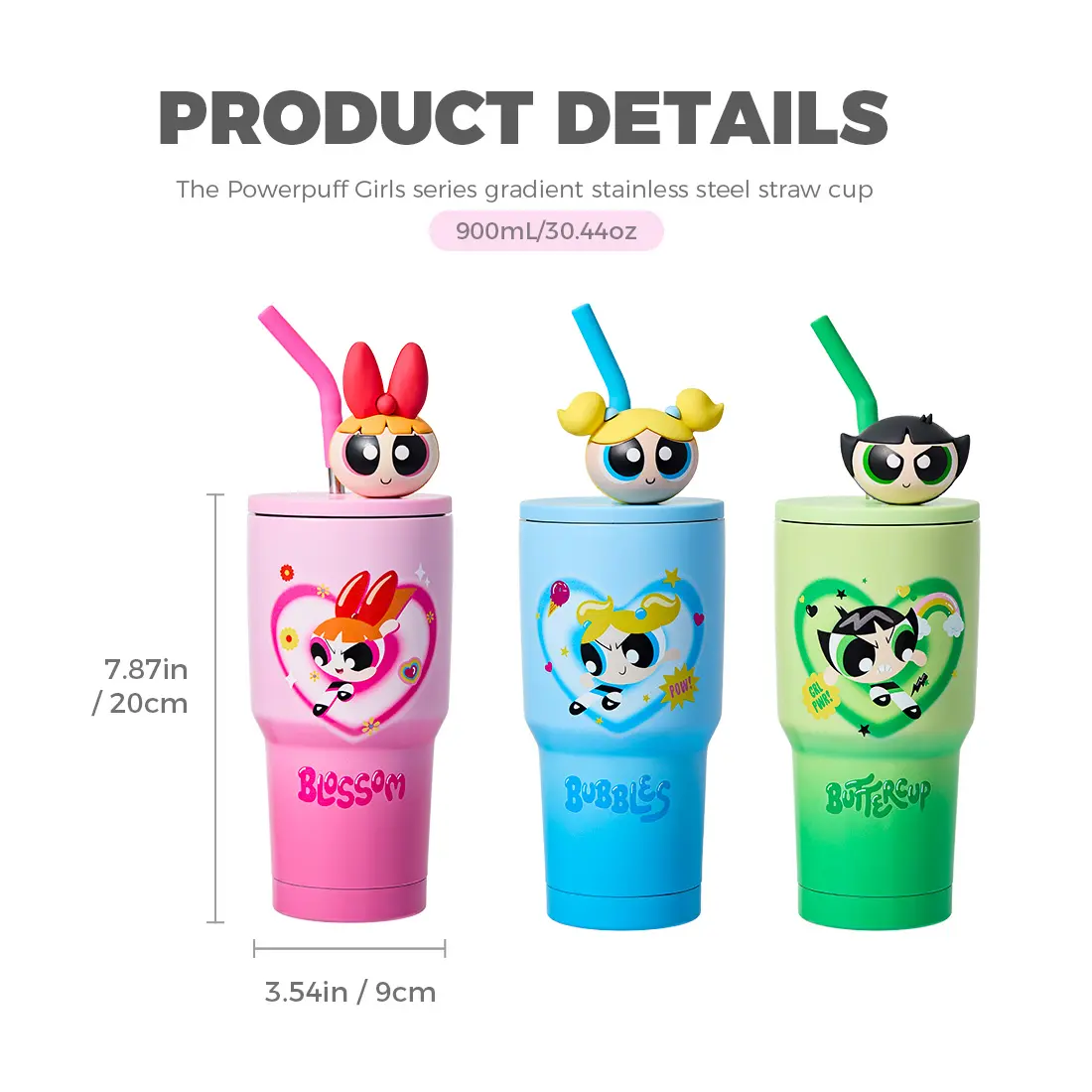 【New Year's Gift】MINISO Powerpuff Girls Gradient Stainless Steel Straw Cup