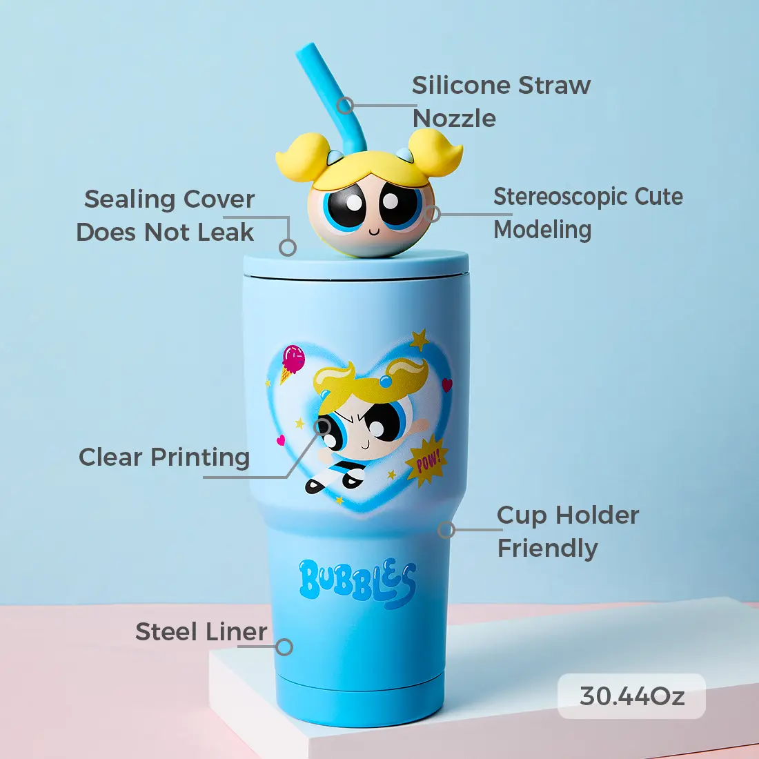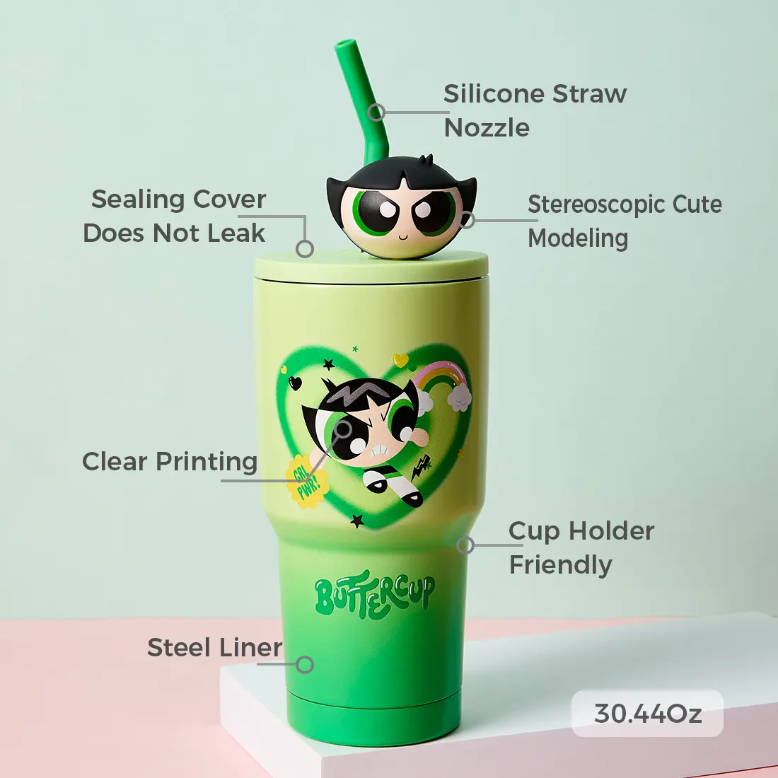 ·This travel mug features a cute Powerpuff Girls gradient design, making it a delightful choice for any occasion. The charming design adds a touch of fun to your day.