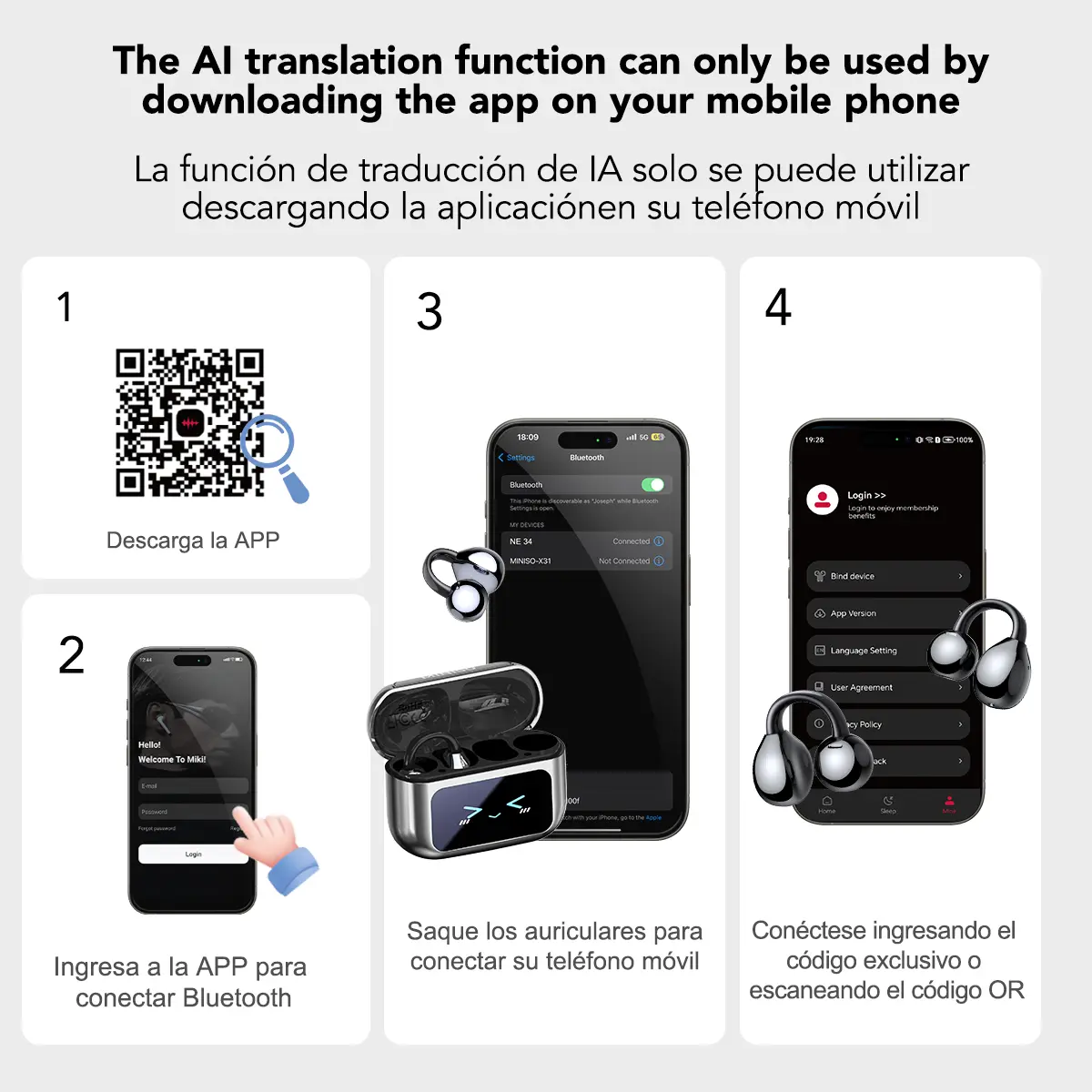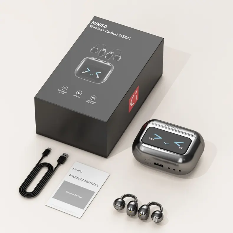 5. MINISO MS201 Translation Headphones, Support 134 Languages ​​Translation with APP, Clip-on Wireless Earphones, Color Touch Screen, Bluetooth 6.0, Suitable for Sports, Running and Work, HIFI Stereo Earbuds