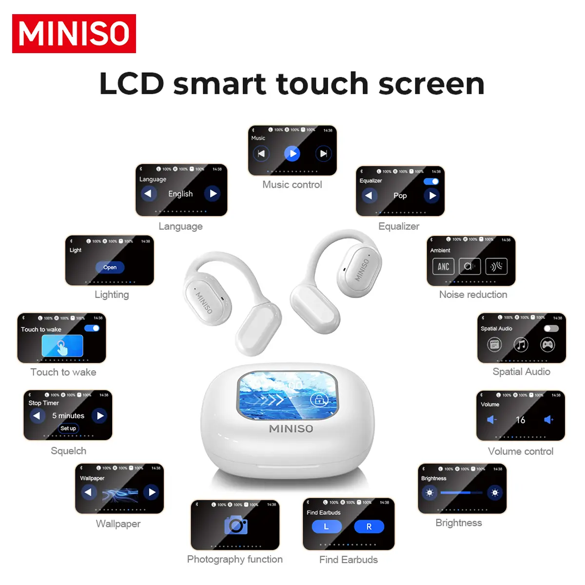 Smart Touch Screen: LCD full-color smart touch screen, you can easily control music playback, noise reduction/transparency mode switching, EQ sound effect adjustment and other functions with your fingers.
