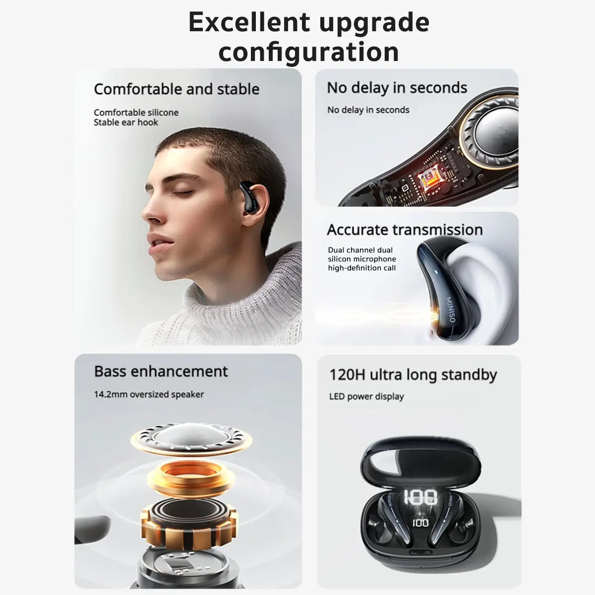 MINISO X8 Open Ear Bluetooth 5.4 Headphones, True Wireless Over Ear Headsets,  Long Battery Playtime for Music Work Earphones Audio Electronic