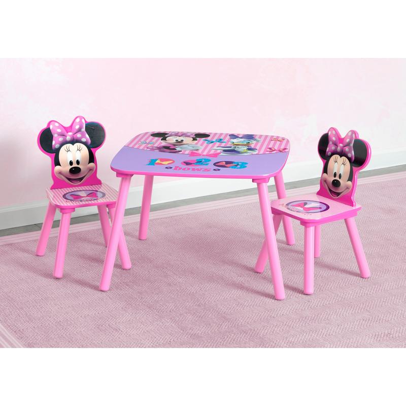 This beautifully designed Minnie Mouse table & chair set is the perfect set for your little Mouseketeer. Your little one will surely love sitting here to do her homework and other miscellaneous activities. Built of strong wood construction, this table and chair set is both safe and enduring. Some assembly is required. Compliments other Minnie Mouse items sold separately.