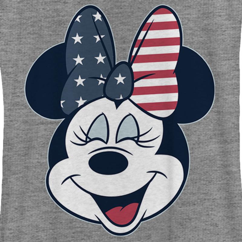 Who knew that dressing "mousey" could be so cute!? Celebrate Walt Disney's most iconic characters with this officially licensed Disney Mickey Mouse and Friends Minnie American Bow Women's Graphic Racerback Tank Top. This adorable tank features a portrait of Minnie Mouse wearing a united states flag bow and laughing with her eyes closed across the front. Add this tank to your Disney collection for the perfect style on your next trip to Disneyland!