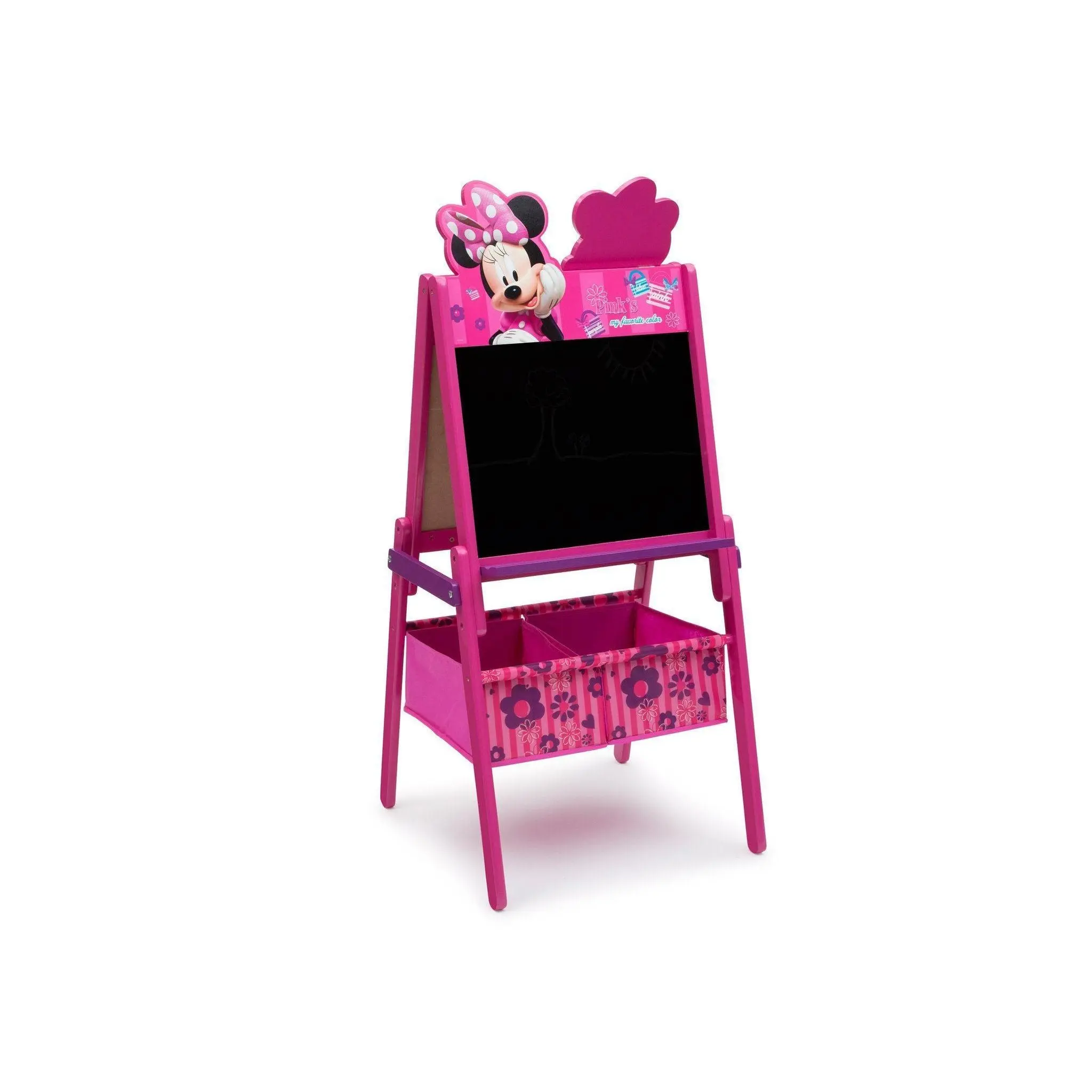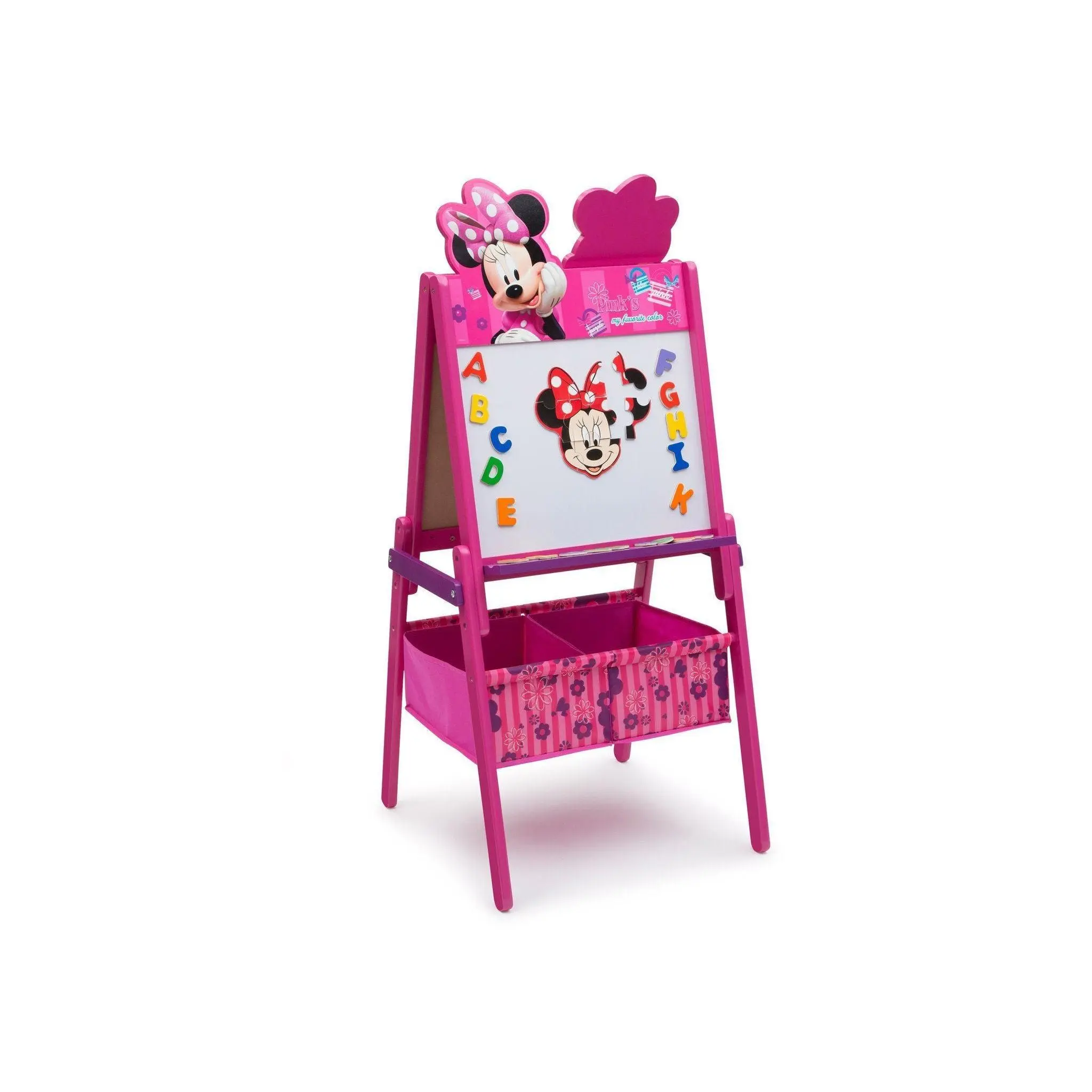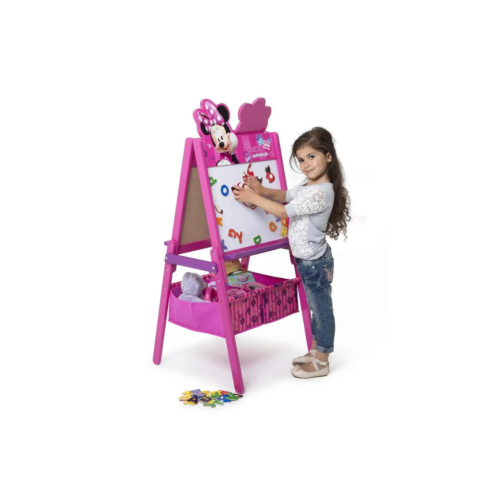 Sure to inspire the sweetest sketches, this Minnie Mouse Activity Easel with Storage from Delta Children is designed with a magnetic, dry-erase surface on one side and a chalkboard on the other. Featuring a cute silhouette of Minnie on top, it includes a magnetic character puzzle, alphabet magnets and two fabric bins underneath, so your child can store chalk, markers and all their works of art.