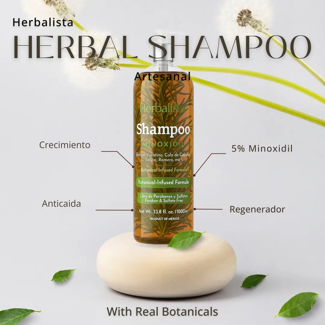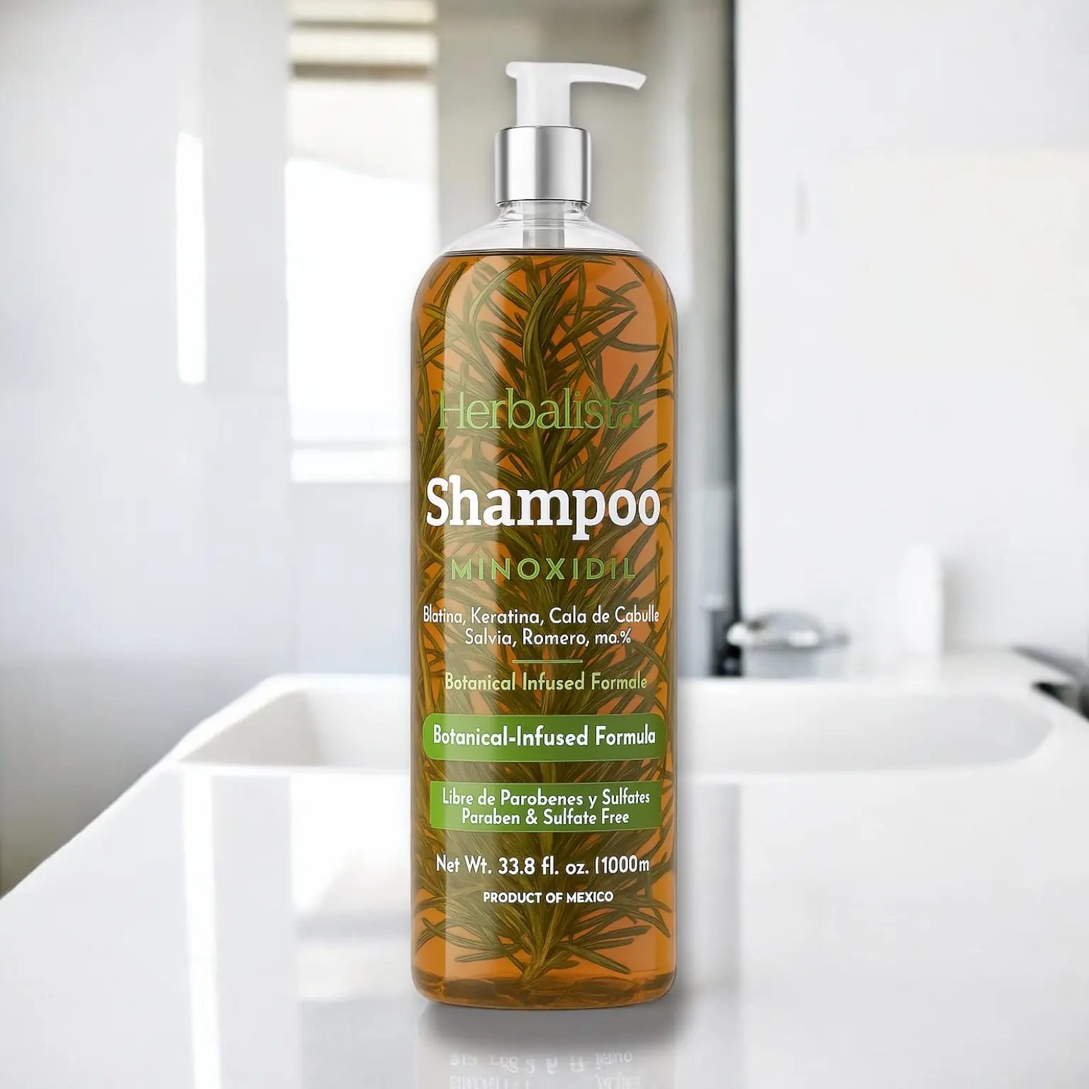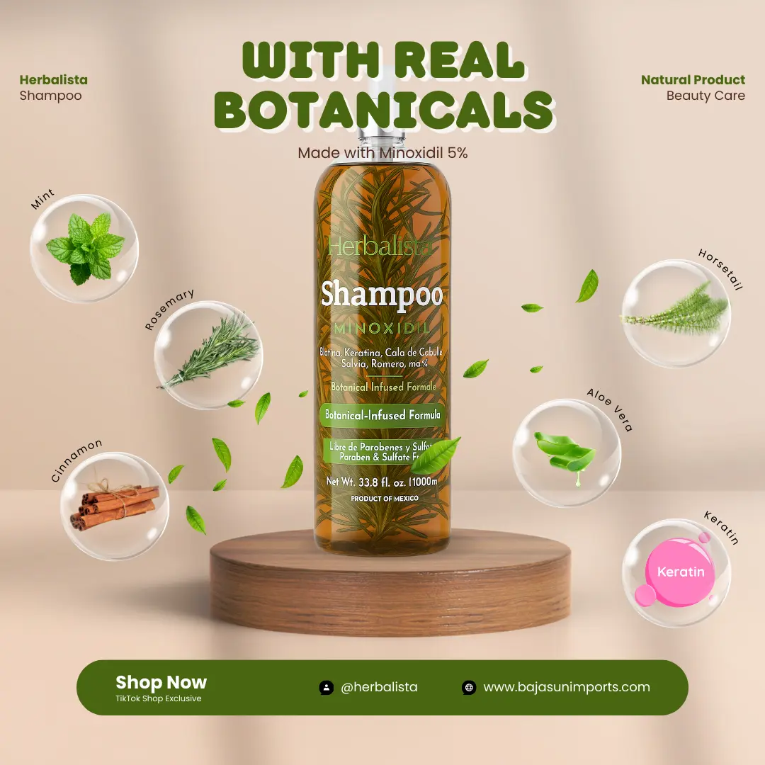✨ Elevate your hair care with our 1,000ML Minoxidil 5% shampoo. Enriched with real botanicals like Rosemary, Cinnamon, Aloe, and Mint, it supports hair growth and prevents hair loss. Each bottle contains multiple pieces of these essential herbs, ensuring you get the benefits of nature in every wash. Perfect for enhancing hair health naturally.