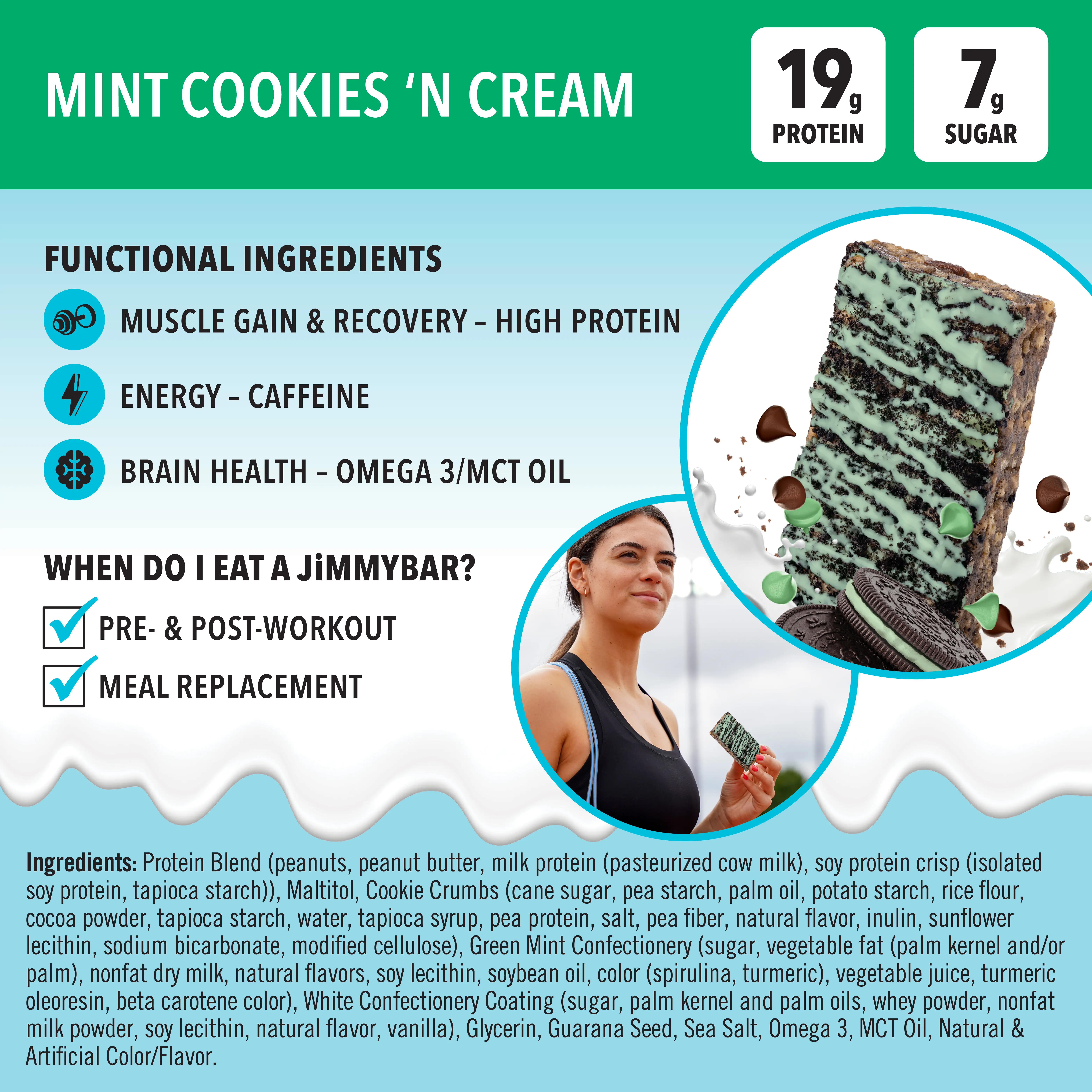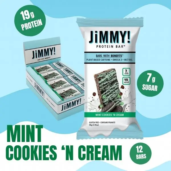 Infused with key ingredients like Guarana caffeine, MCT oil, and Omega-3s, JiMMYBAR! feeds your brain while delivering 19g of protein and only 6g of sugar to keep you sharp, strong, and dialed in all day.