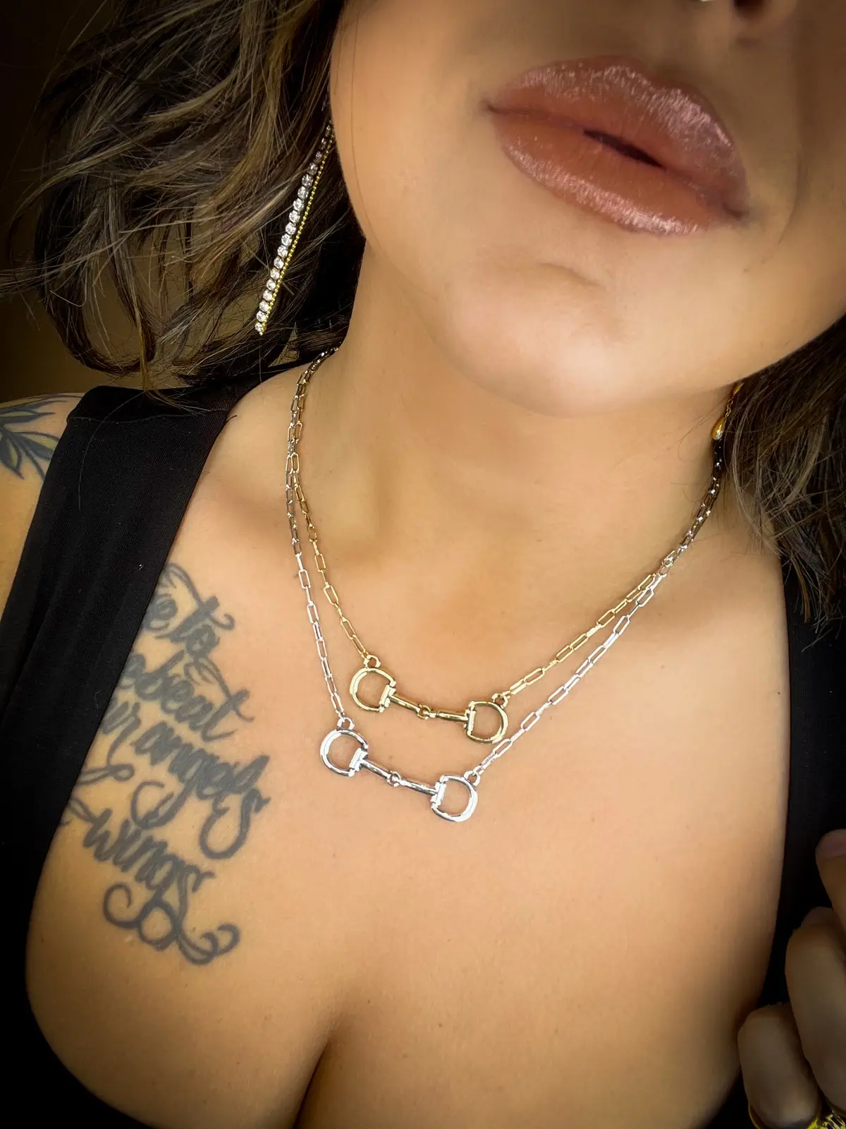 The Minta Snaffle Bit Pendant Necklace is a refined nod to classic equestrian style with a modern, minimalist feel. Featuring a sleek snaffle bit pendant suspended from a delicate chain, this necklace adds subtle sophistication and timeless charm to any look.