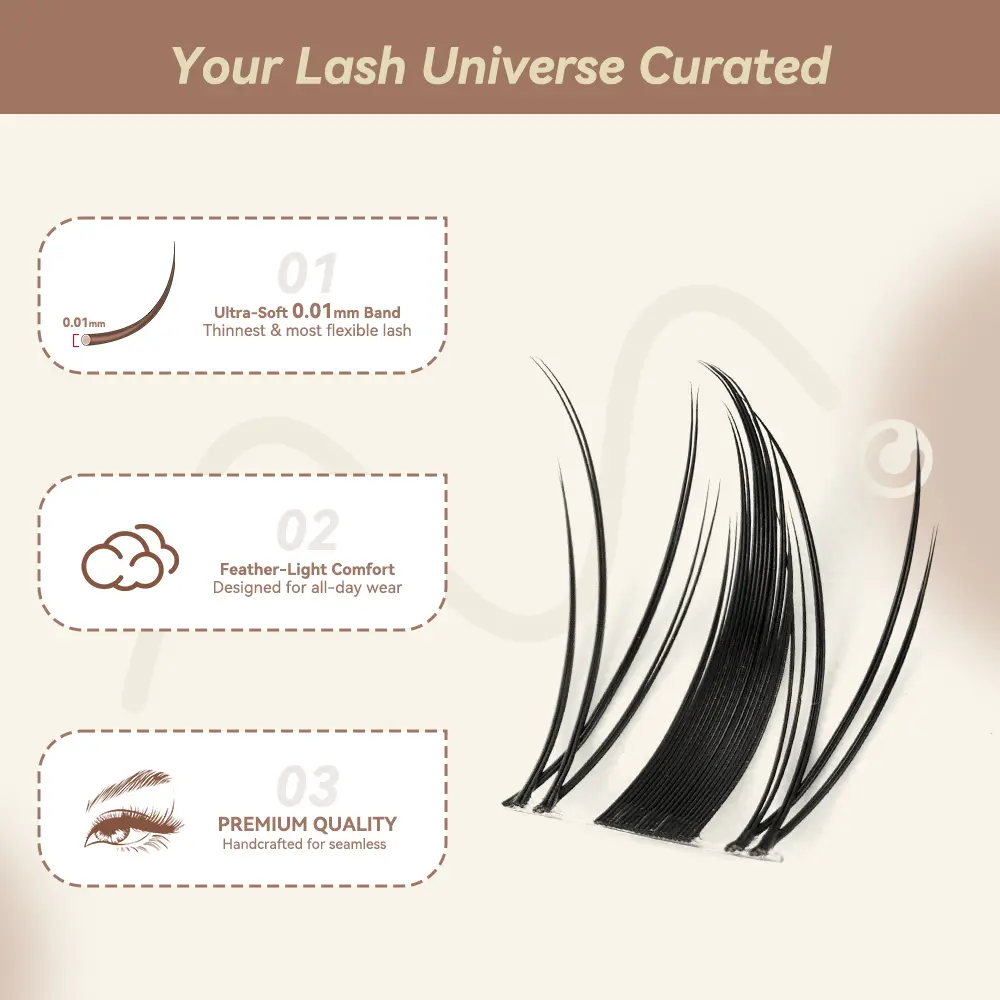 These lashes are designed for all-day wear, ensuring they stay put and look flawless. Perfect for those seeking long-lasting, waterproof lashes that maintain their appearance throughout the day. The thin band provides a comfortable fit, making these lashes ideal for daily use. They are super soft, ensuring a gentle feel against your eyelids, enhancing your comfort.