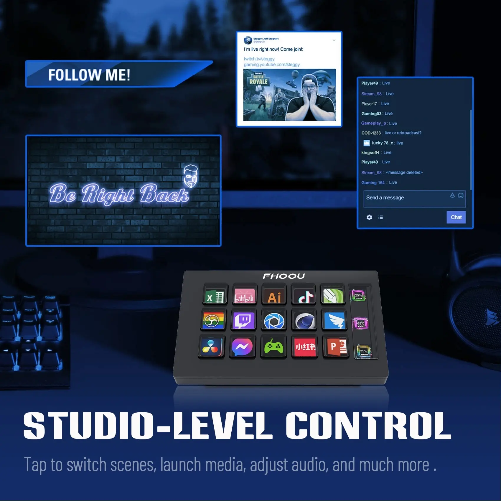 【15 Keys Functionality】: Equipped with 15 customizable LCD buttons, suitable for managing various live content creation tasks.