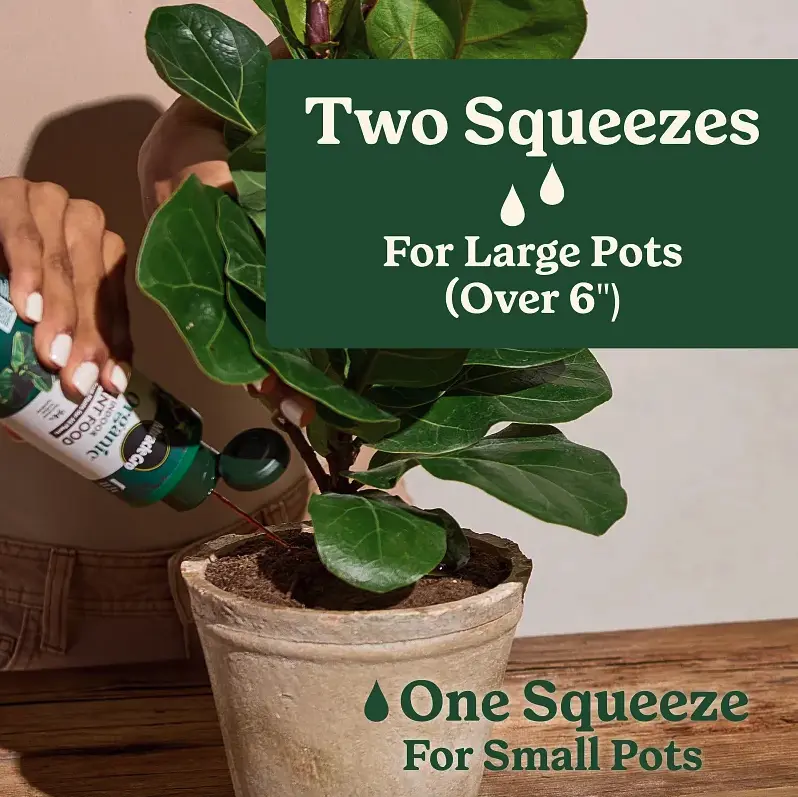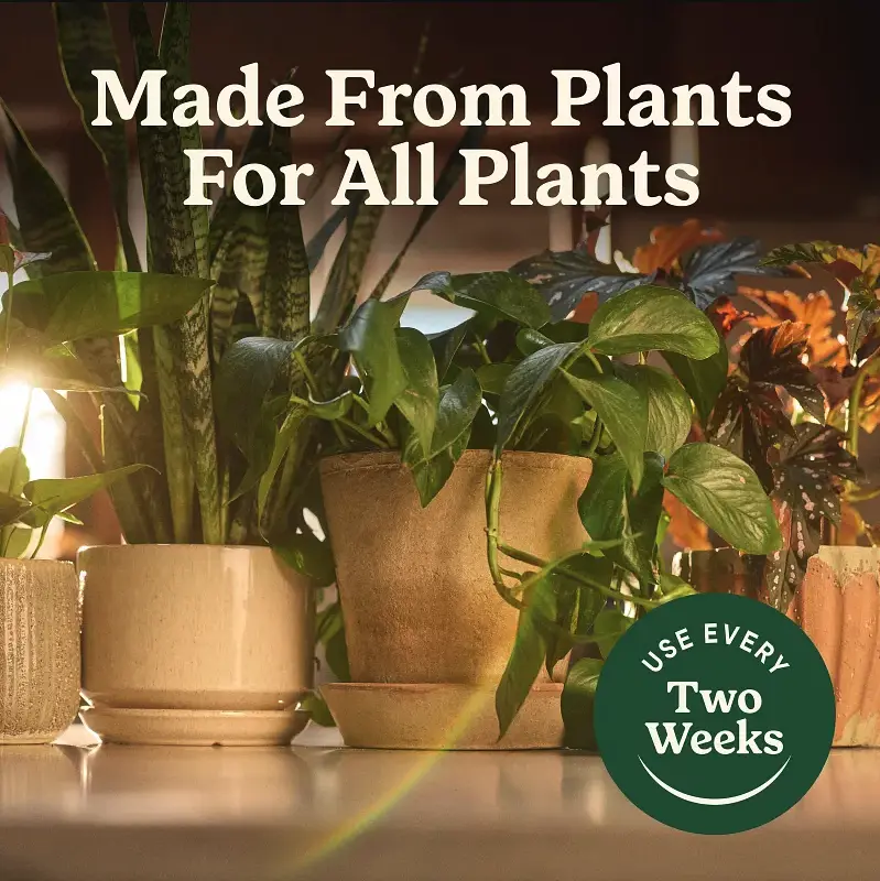 Why you’ll love it: Made from Plants: Feel good about what you feed your indoor jungle. This organic formula is made with 94% plant-based fertilizer ingredients to nourish your plants naturally. No-Mess Smart Cap: We know liquid plant food can be messy, so we fixed it. Our smart dose cap releases the perfect amount every time—just flip the bottle and squeeze directly onto the soil or into your watering can. Feeds Instantly: This organic liquid plant food gets to work right away, delivering essential nutrients to help your plants grow healthier and more resilient (vs. unfed plants).