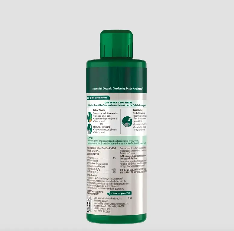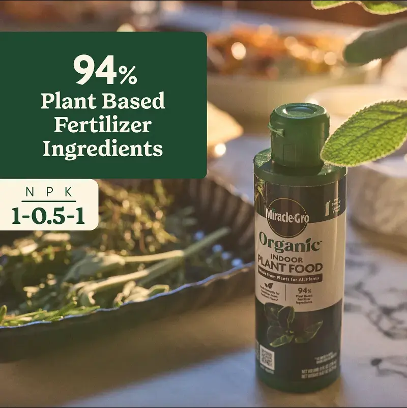 5. Miracle-Gro Organic Indoor Plant Food - Plant-Based Liquid Fertilizer for Houseplants, Feeds Instantly, 8 fl. oz.