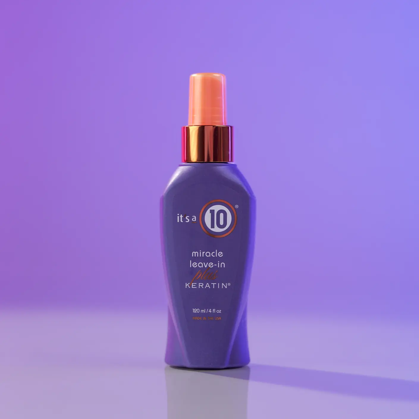 Smooth and sleek are all simpler than ever thanks to the essential Leave-In and effortless spritz-on application of It’s a 10 Miracle Leave-In Plus Keratin. This lightweight, deliciously-smelling conditioner penetrates deep into the hair shaft to help rebuild dry, brittle and damaged hair from the inside out.