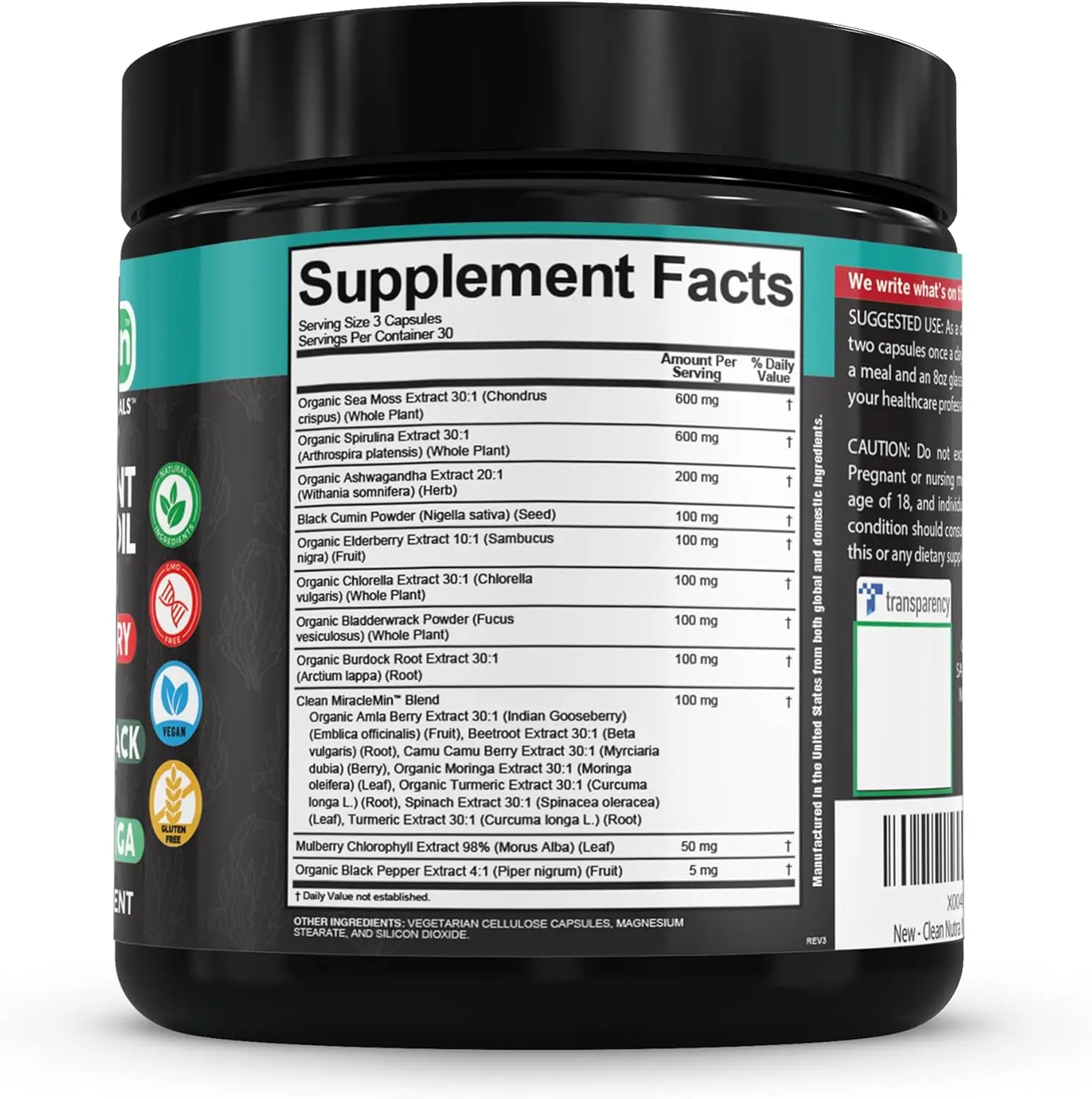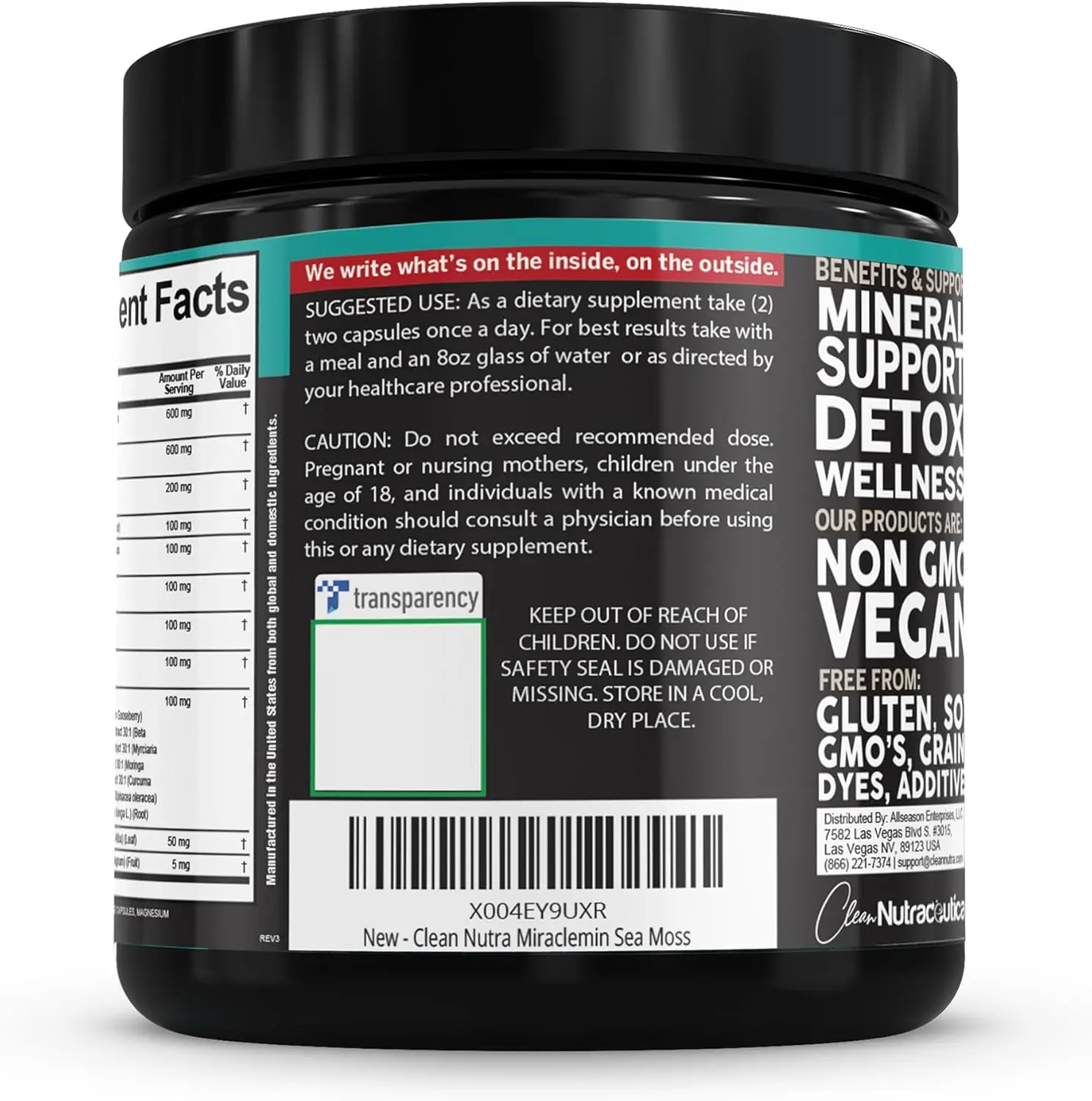 Elevate your health with the Clean Nutra Miraclemin Sea Moss All-in-One Organic Supplement, a powerful blend of ingredients designed to support your well-being.