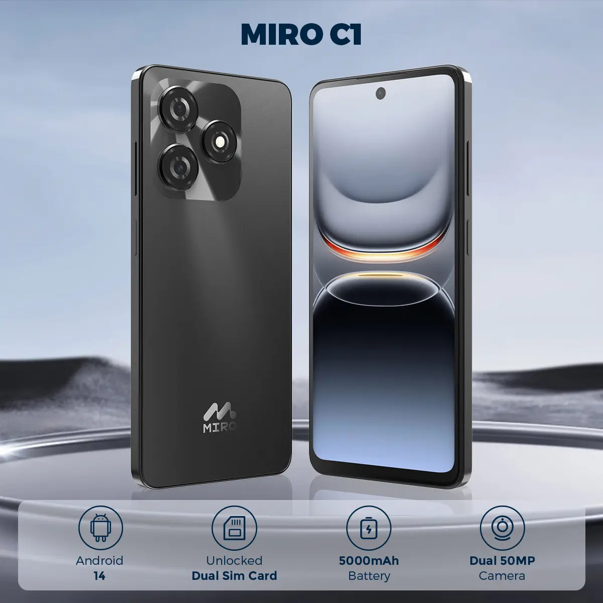 MIRO C1 Phone, USB-C Cable, Quick Start Guide.