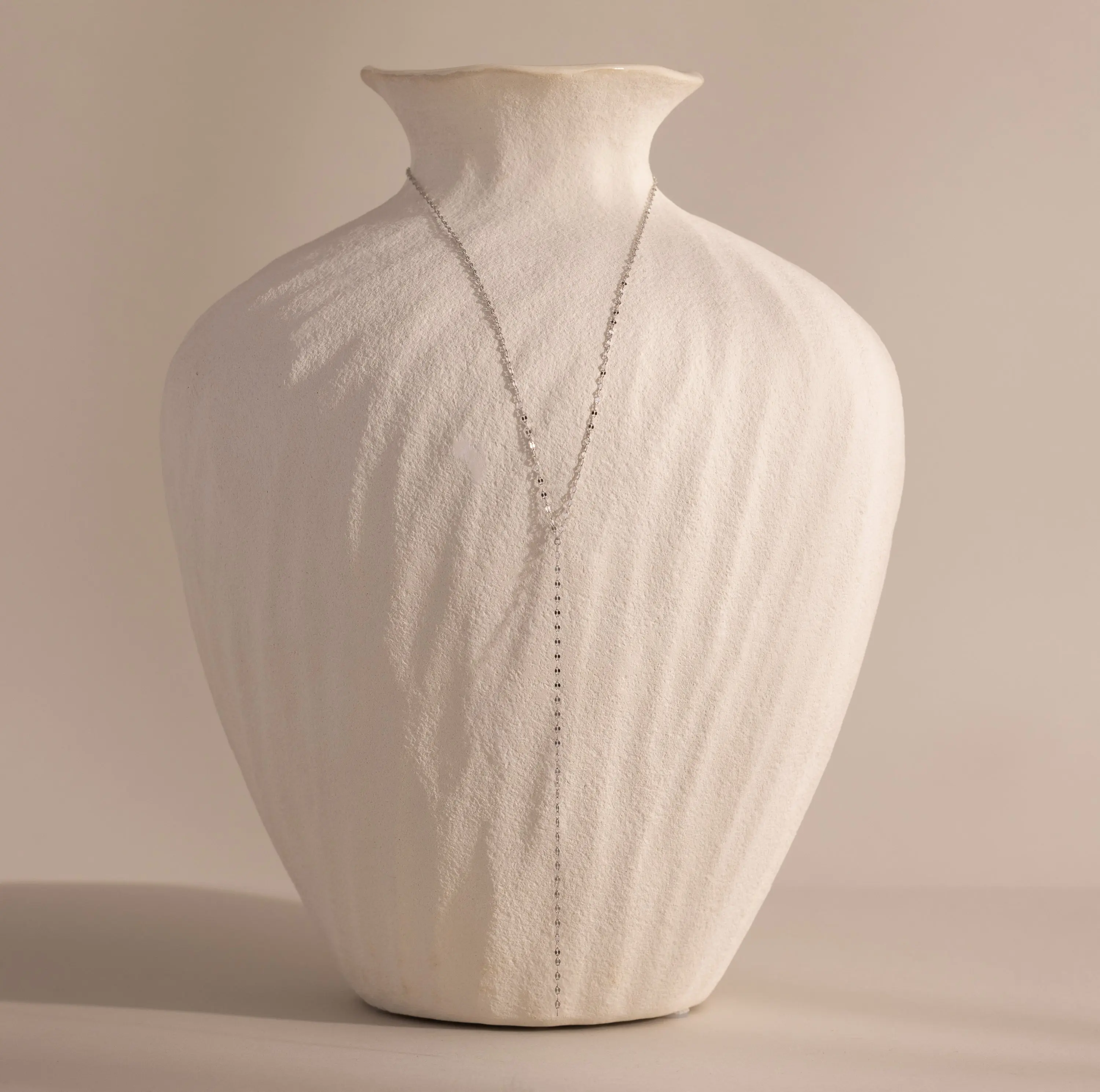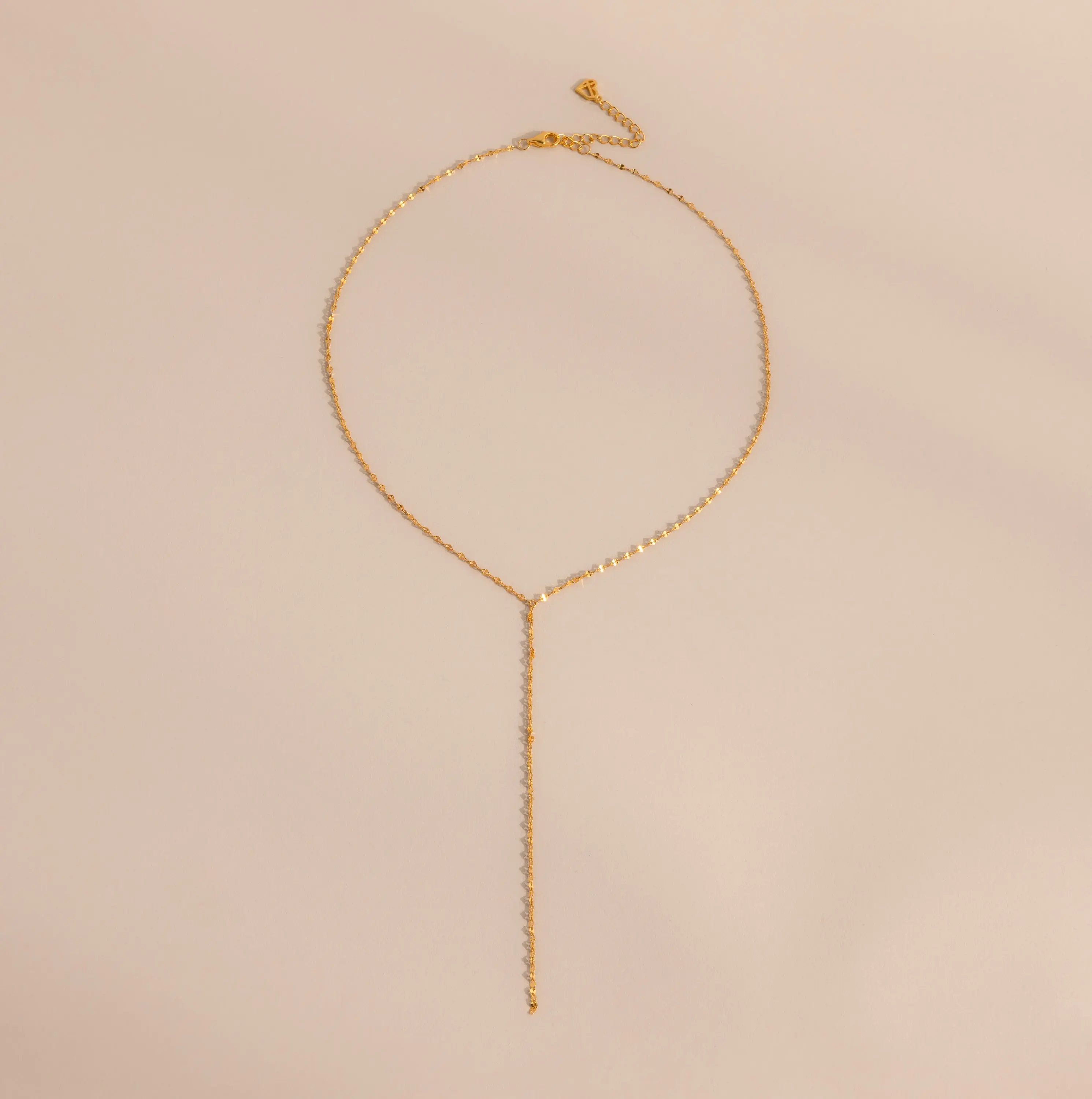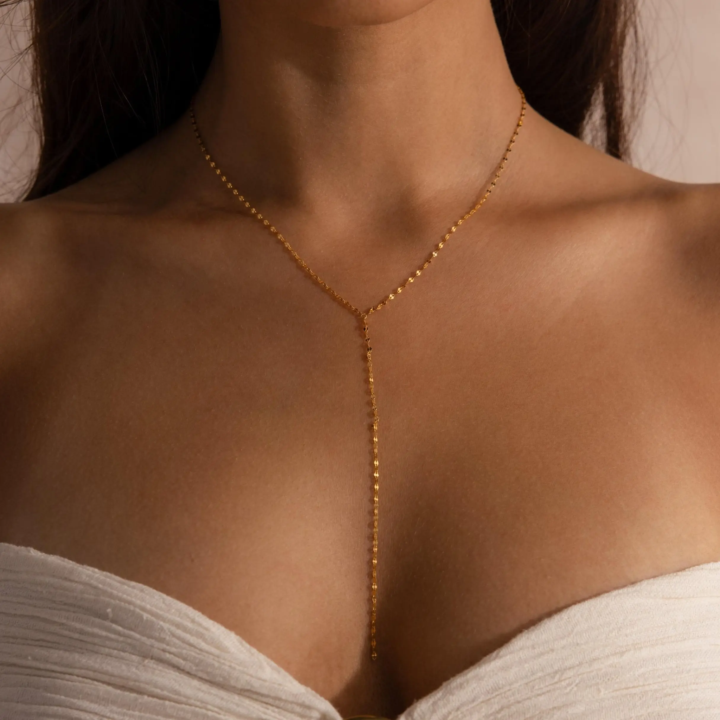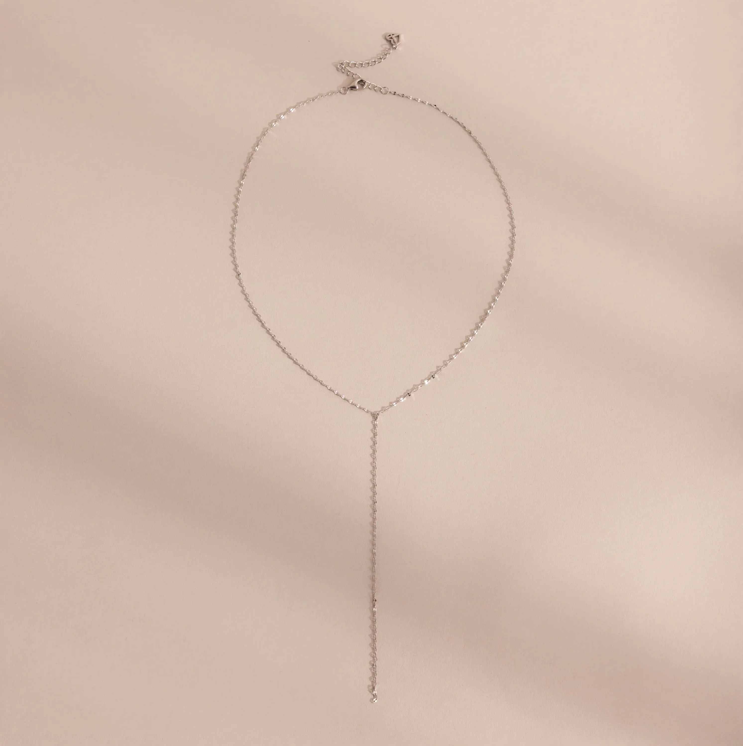 Effortlessly modern and refined, our Mirror Chain Lariat Necklace catches the light with its sleek, reflective finish. Lightweight and versatile, it layers beautifully or stands alone as a subtle yet striking statement.