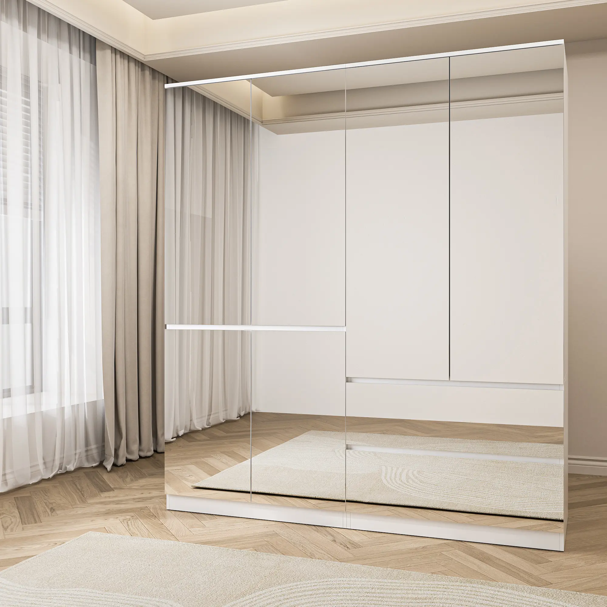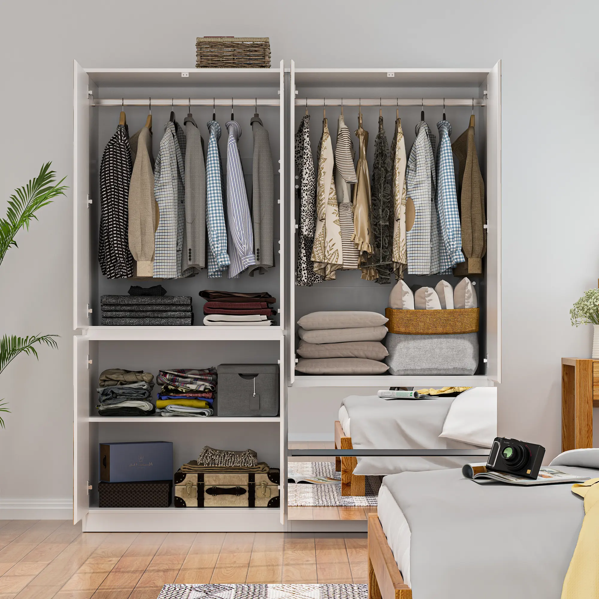 ·Full Length Mirror Doors - The wardrobe armorie closet is designed with full glass changing mirrors, make everything handy especially when you're in a hurry. Without too much elaborate decors, the storage cabinet will bring tidy and elegance to your home