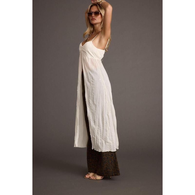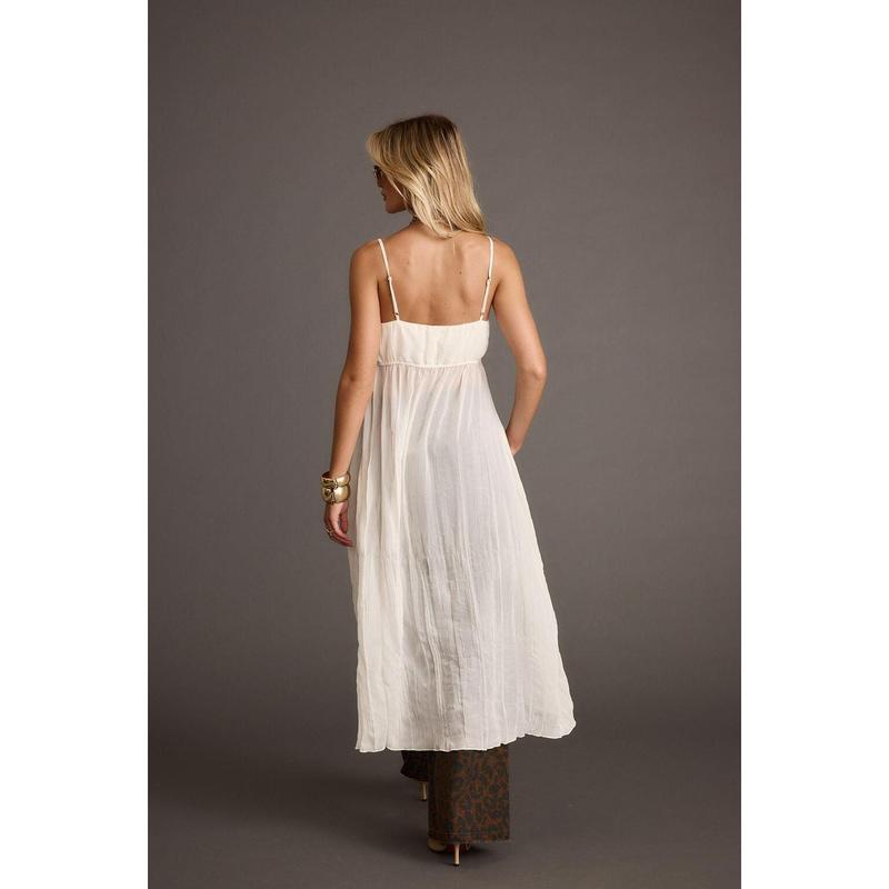 Not your basic tank, the Mischa Ivory Longline Cami Top are what dreams are made of. With long flyaway details that drape down and flow gracefully with every step you take. Pair with jeans or shorts and use the Mischa Ivory Longline Top as your canvas for boho and statement accessories.