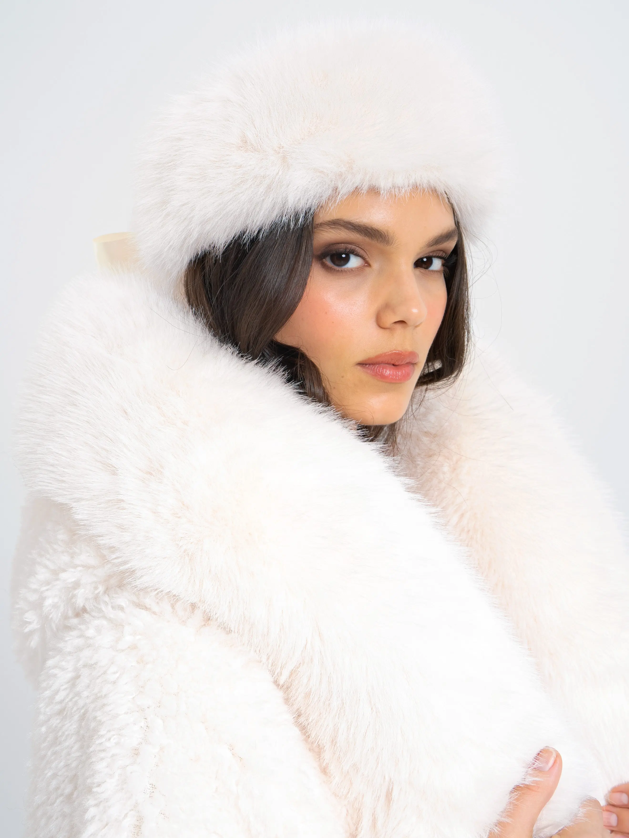 5. Miss Circle White Wrap Around Vegan Fur Hat