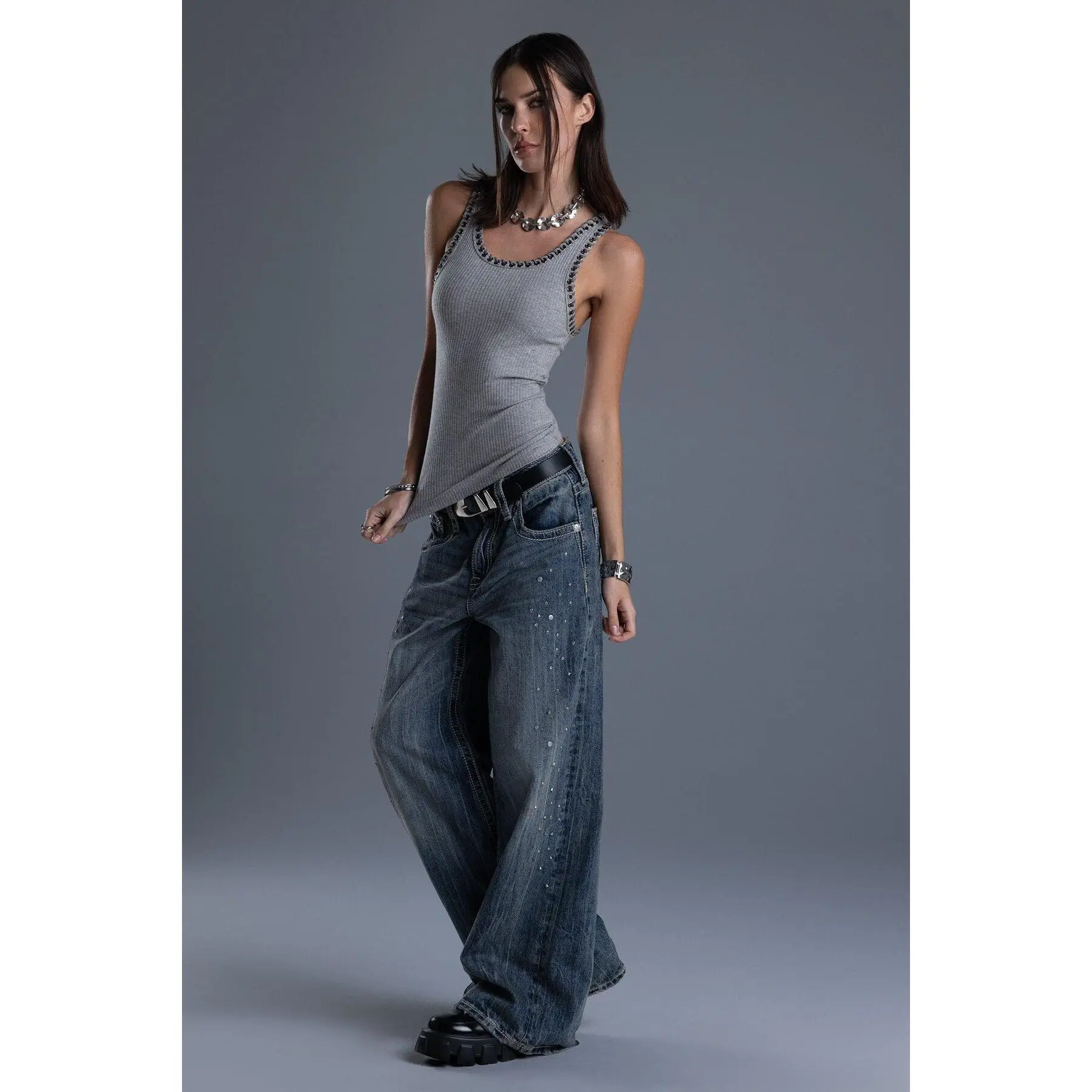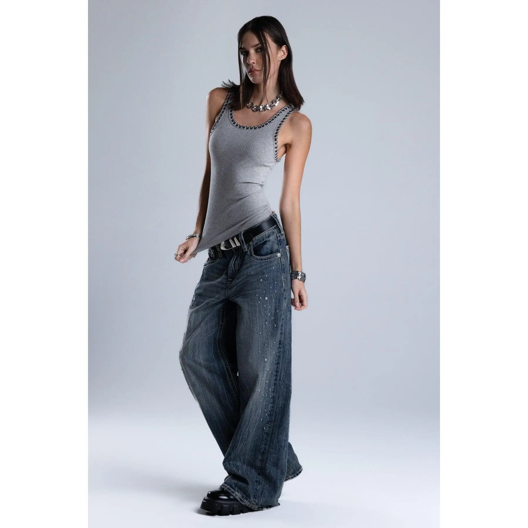 5. Harmony Studded Baggy Jeans