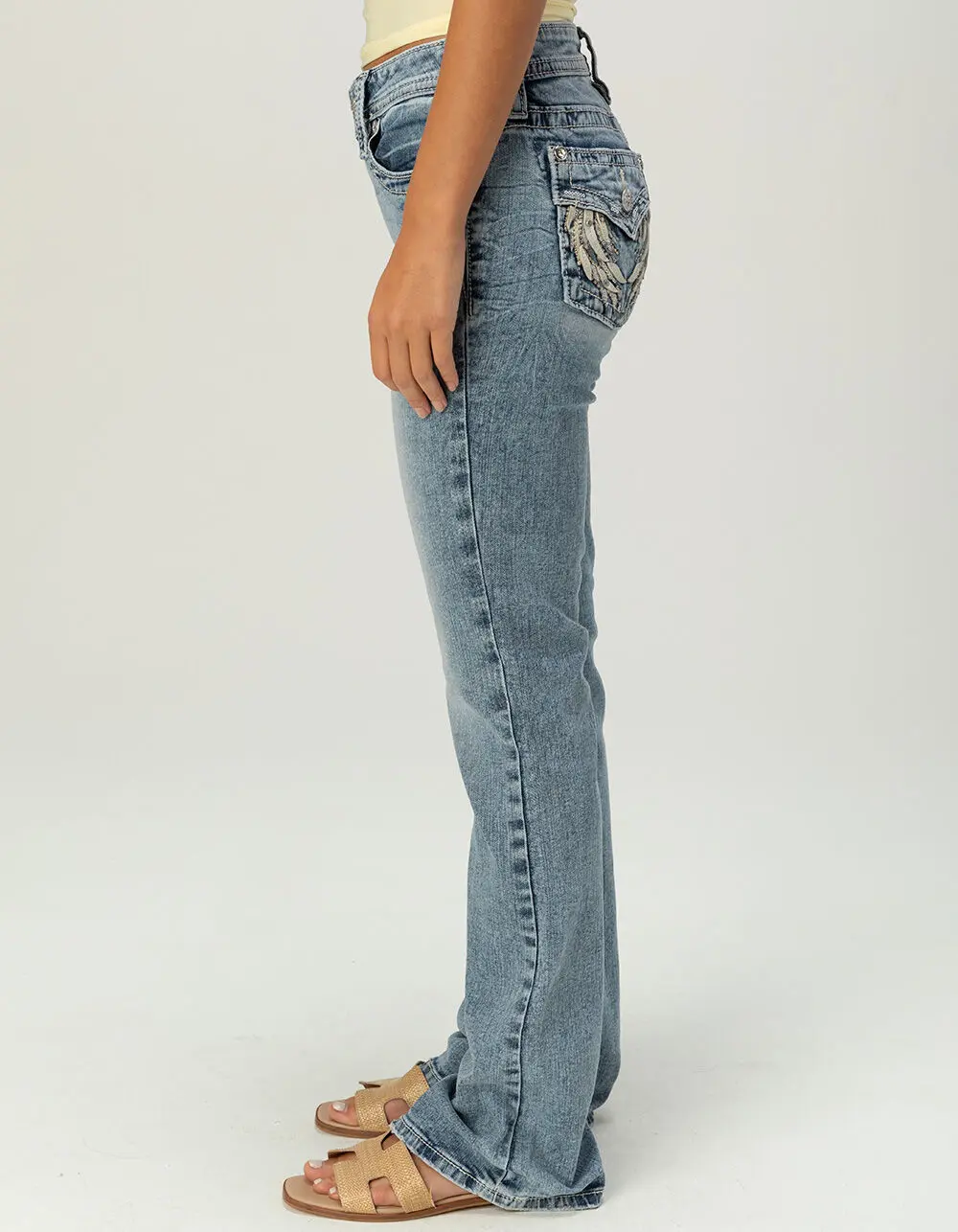 5. MISS ME Wing Pocket Mid Rise Womens Bootcut Jeans