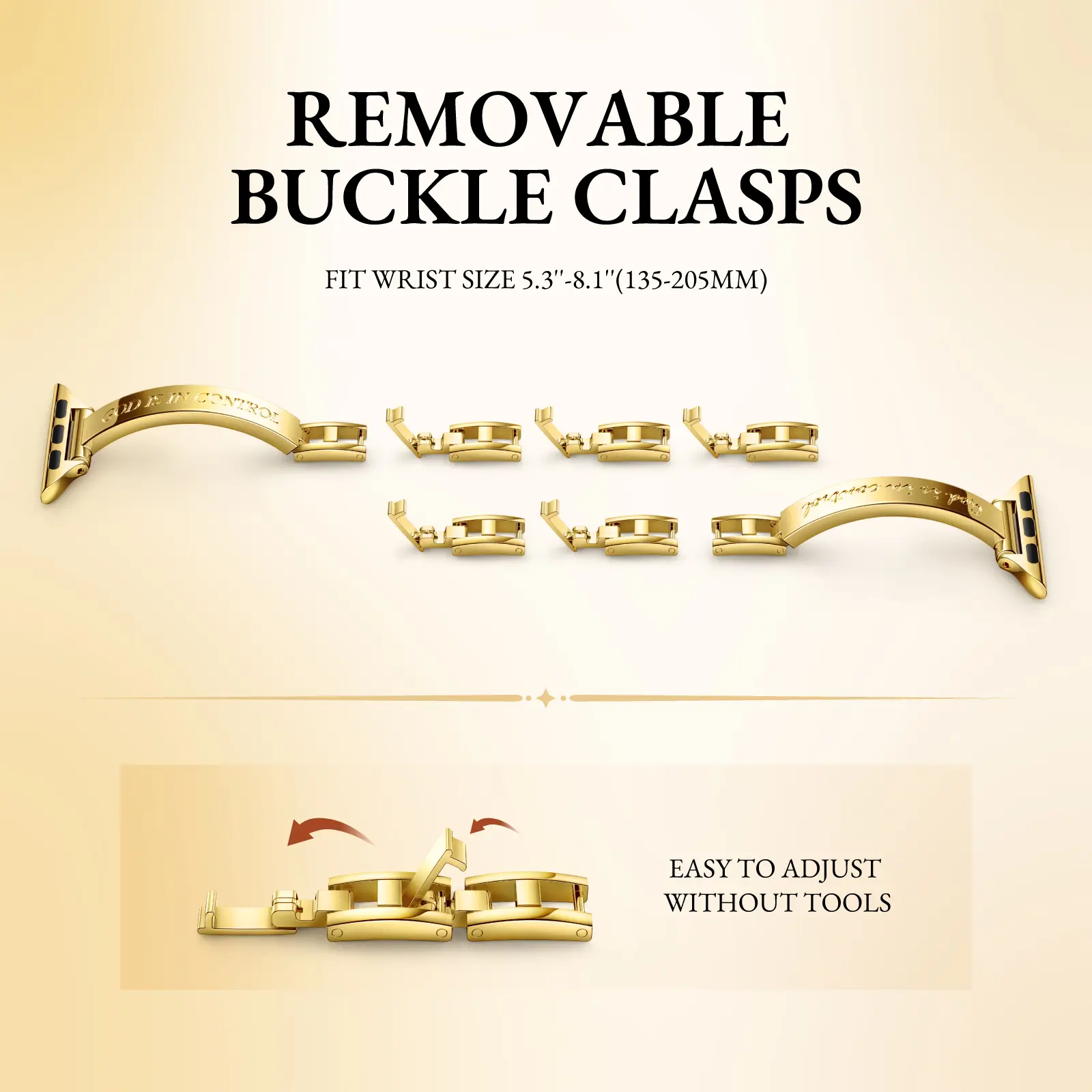 Designed with 7 total links, including 5 removable links, allowing easy size adjustment without any tools.