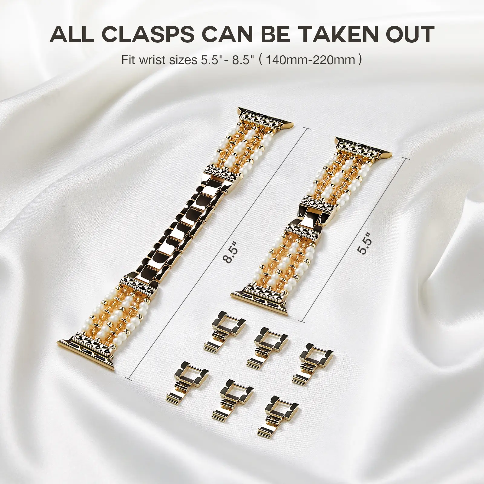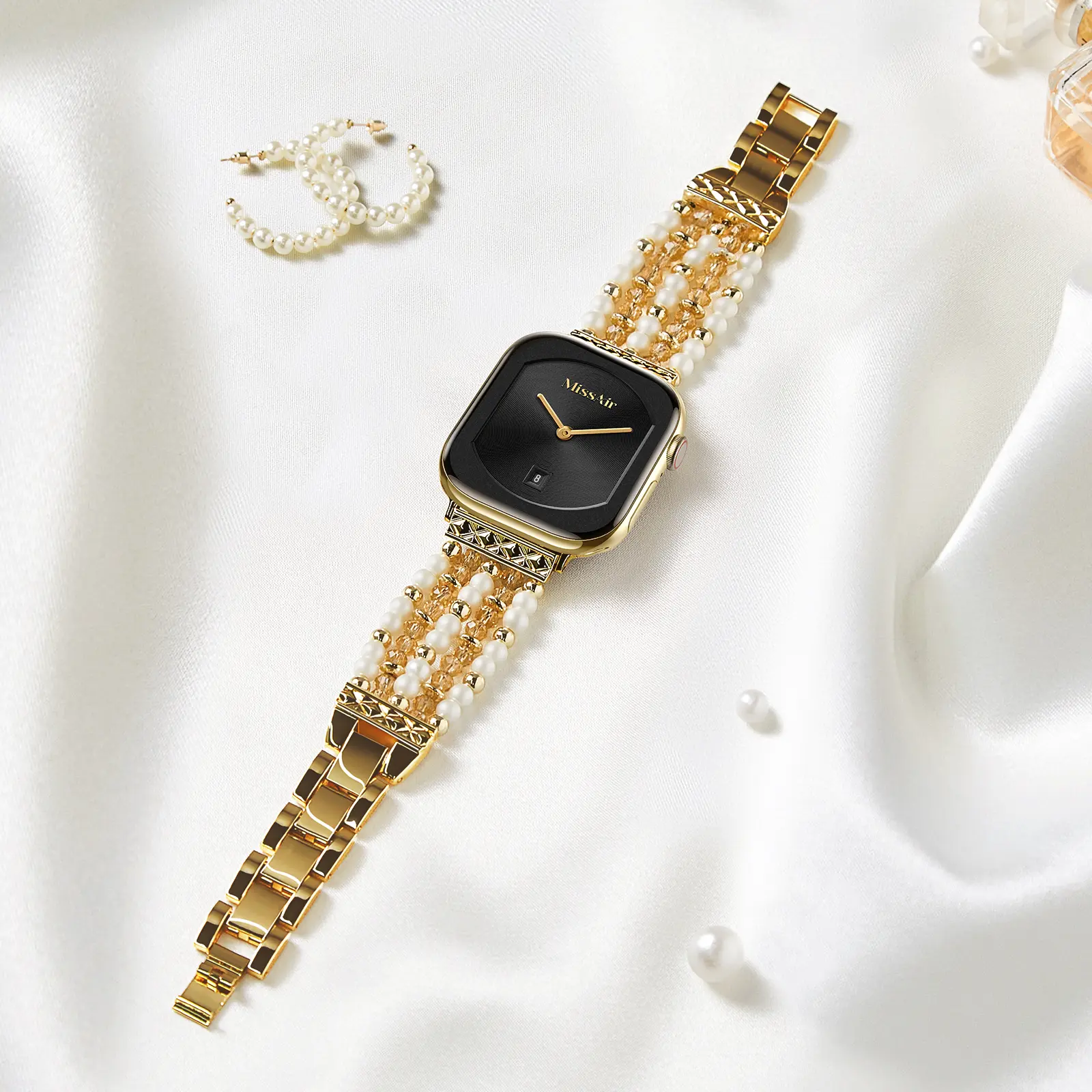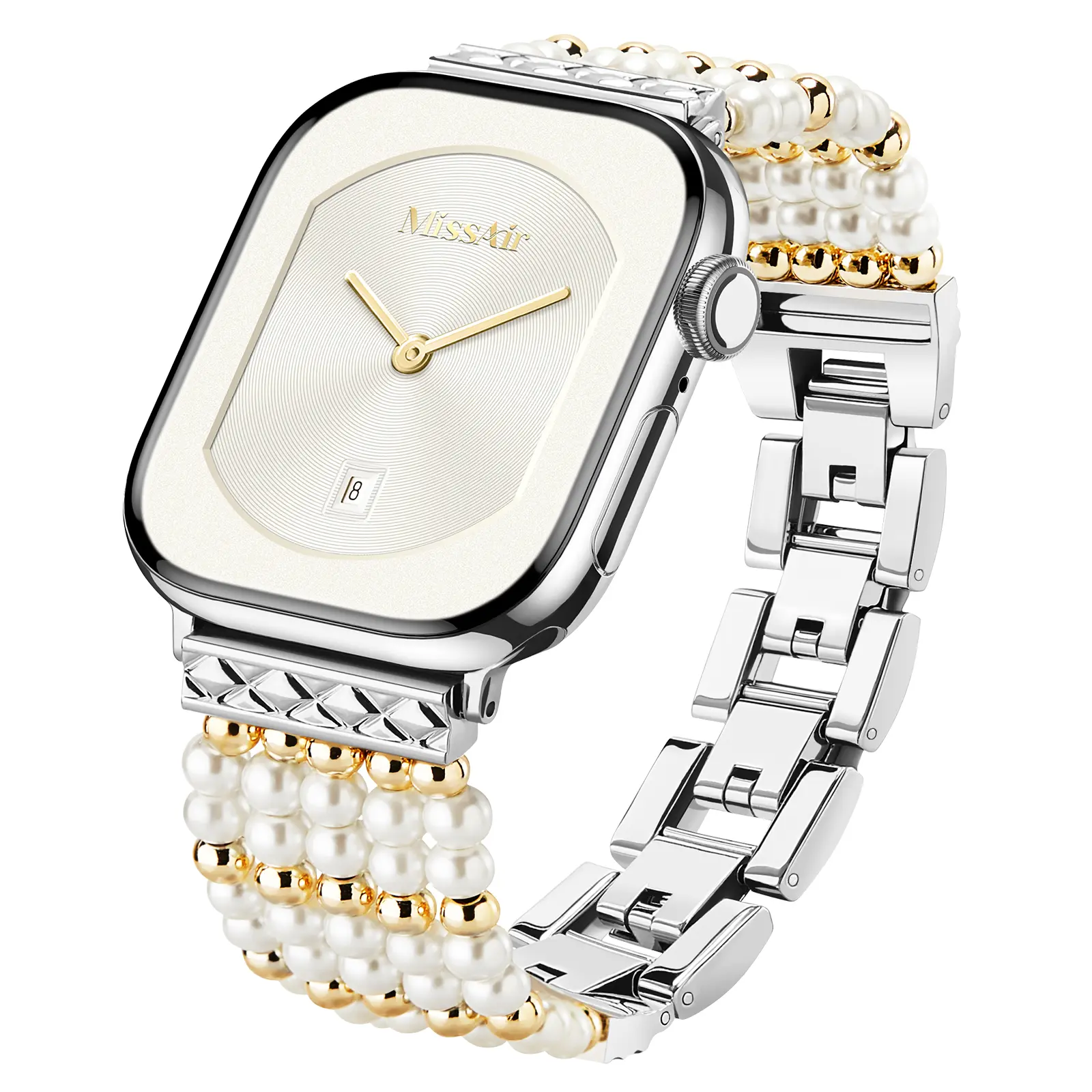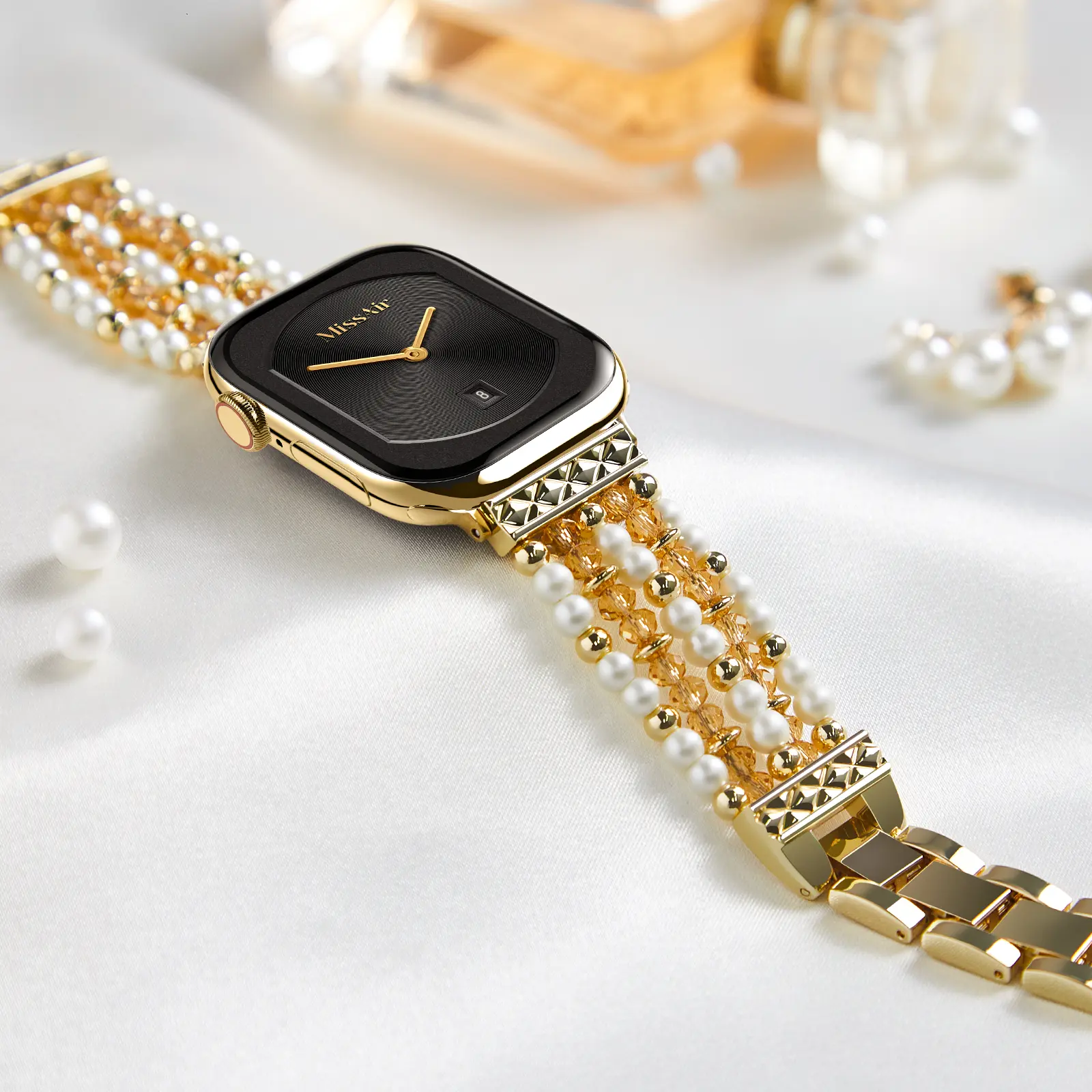 Looking to add a touch of bohemian luxury to your Apple Watch? The MISSAIR Luxury Bands combine timeless pearls, beads, and premium 316L stainless steel to create a unique accessory that stands out. Whether you're dressing up for a night out or adding elegance to your everyday look, this band elevates your style effortlessly. Its adjustable strap with five easy-to-remove clasps fits wrists from 5.31" to 8.07", so you get a comfy, secure fit without any tools. Compatible with all Apple Watch sizes from Series 1 through 10, SE, and Ultra, it’s a versatile choice for every watch lover. Each band reflects expert craftsmanship, ensuring durability and a lasting shine. Available in Champagne, Gold, and Silver, it’s the perfect feminine accessory to complement any outfit. Ready to upgrade your watch game? Slip on this chic band and let your style shine every day!
