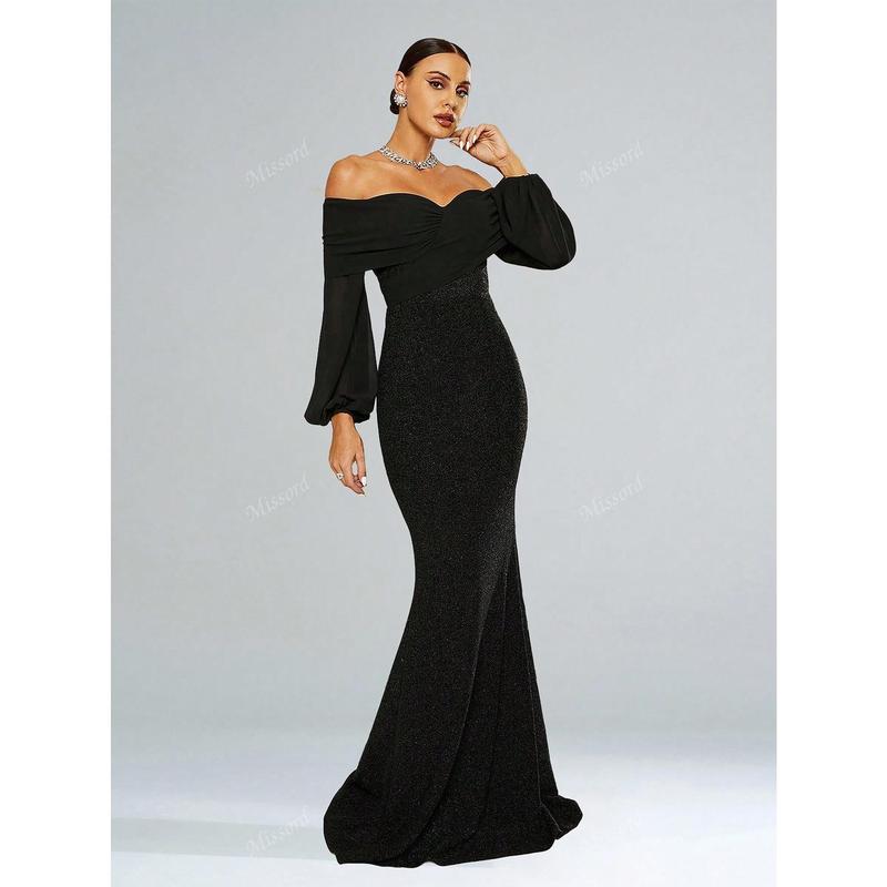 Off-the-shoulder + mermaid silhouette is literally the peak of elegance! This black dress nails the “chic and fierce” vibe 👗#EveningGown #Missord #winterfashion #christmasgiftideas #blackfriday