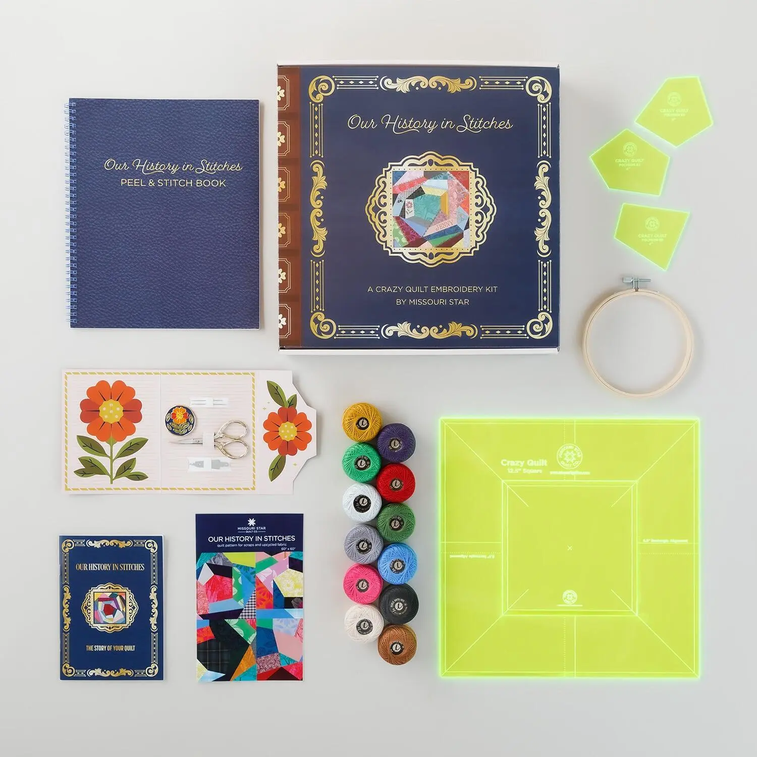 Our History in Stitches: A Crazy Quilt Embroidery Kit by Missouri Star