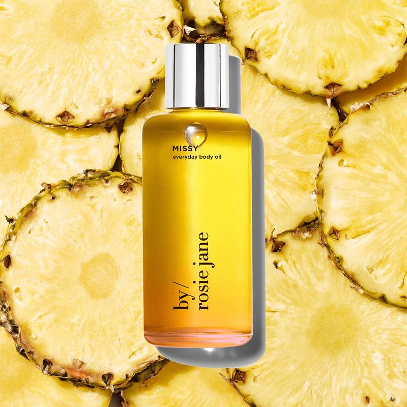 JOY IN A BOTTLE. drench your skin in our ultra hydrating MISSY BODY OIL. a natural oil that locks in moisture and leaves skin glowy. scented with our award-winning MISSY fragrance, a blend of tropical fruits, white florals, and fresh citrus.