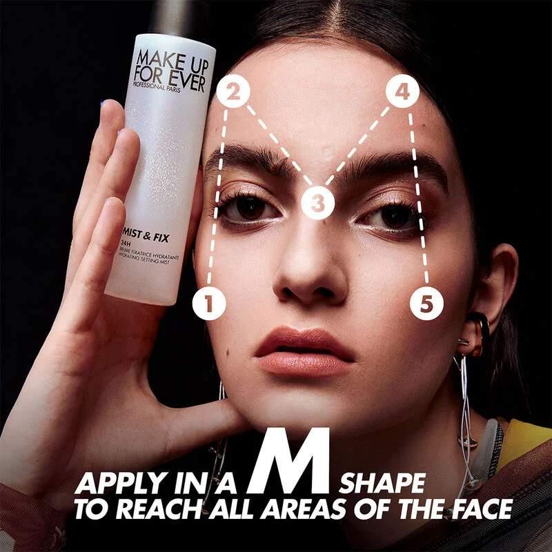 At Make Up For Ever, we're determined to deliver cleaner formulas and more sustainable packaging. Mist & Fix is composed with 93% natural origin ingredients, along with a recyclable bottle and 100% recycled cap.