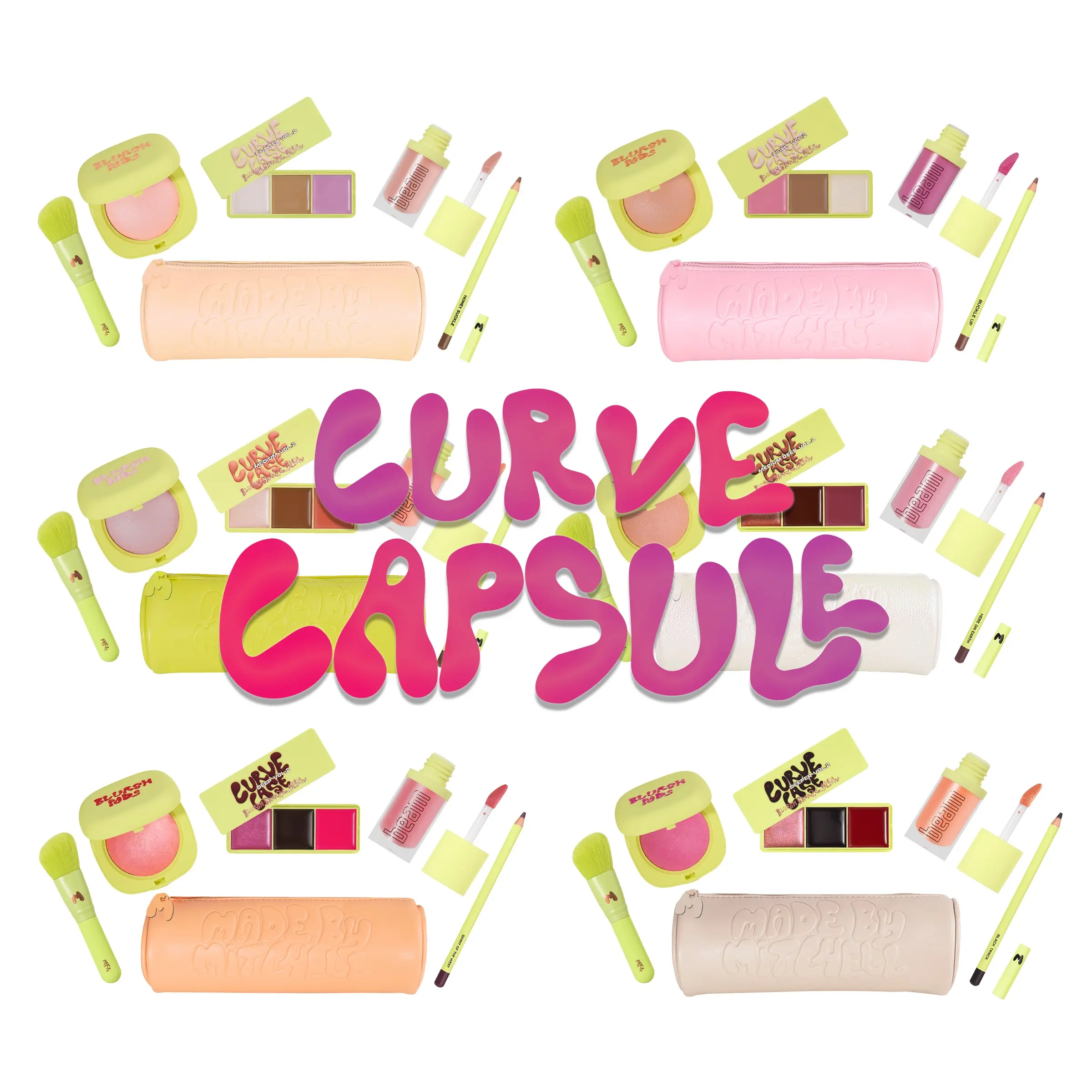 Made By Mitchell CURVE CAPSULE 5-Piece Face & Lip Set | Limited Edition Blush, Lip & Brush Makeup Bundle