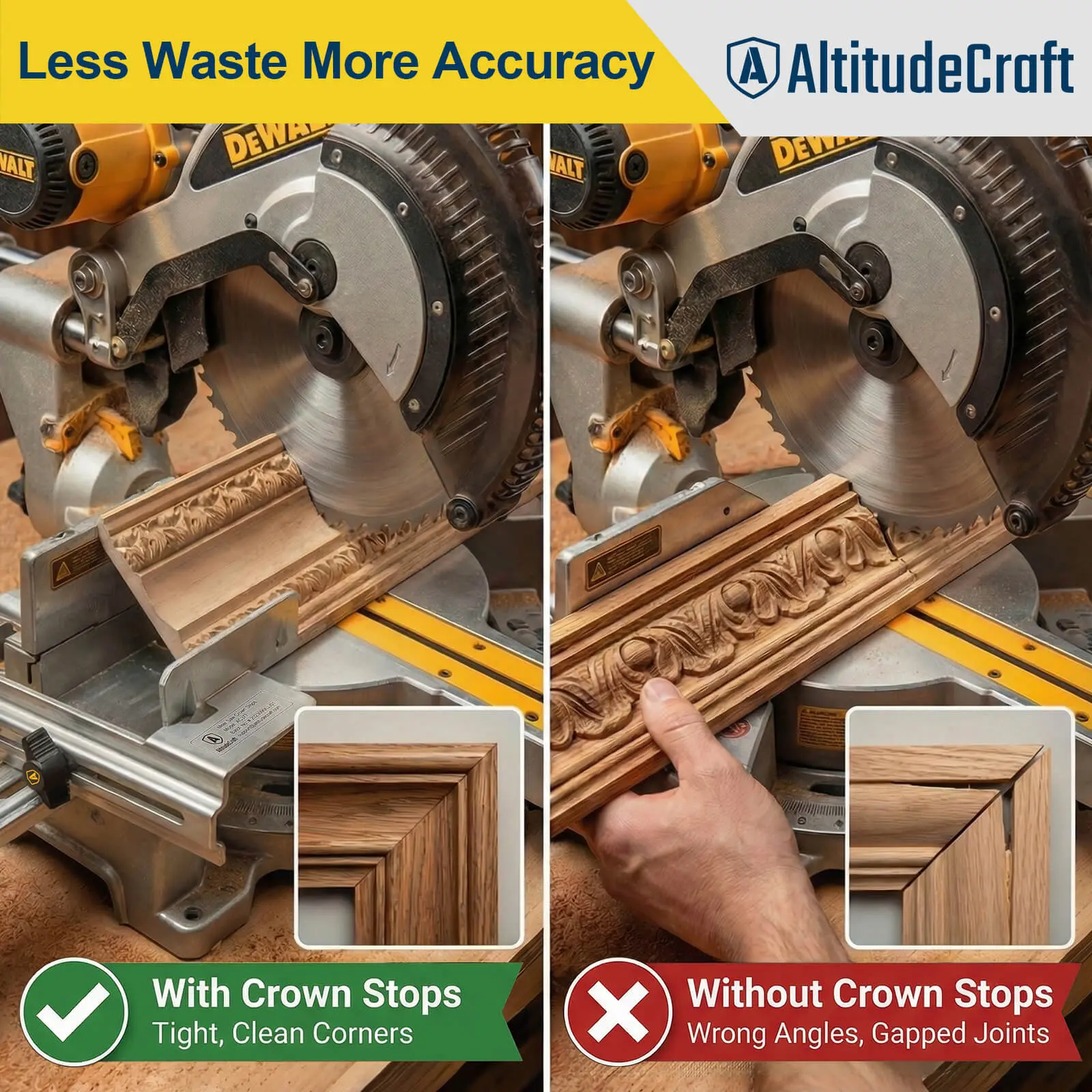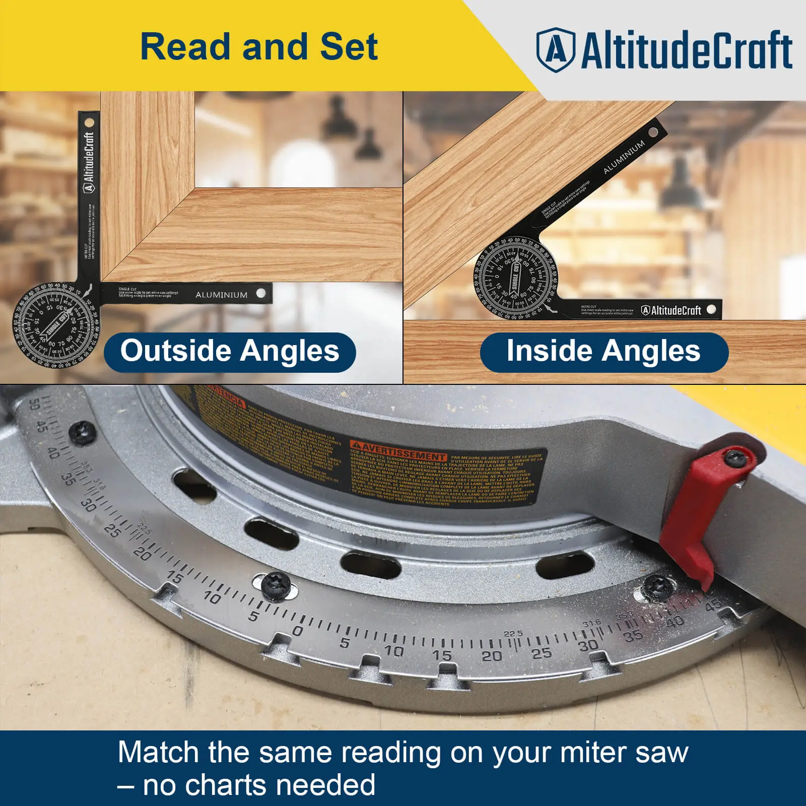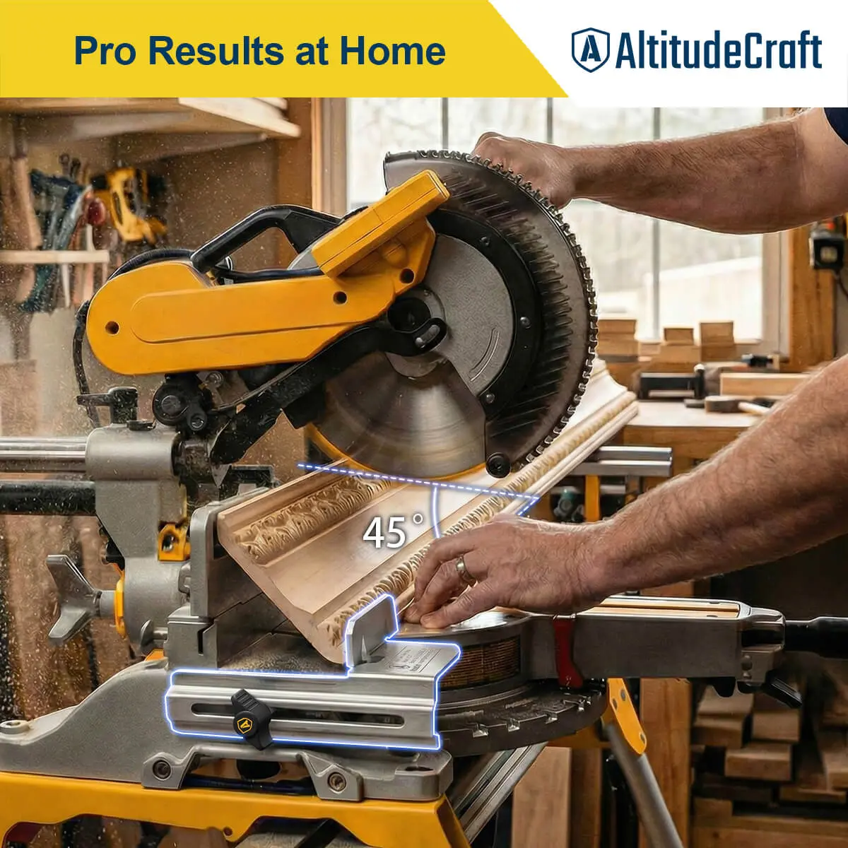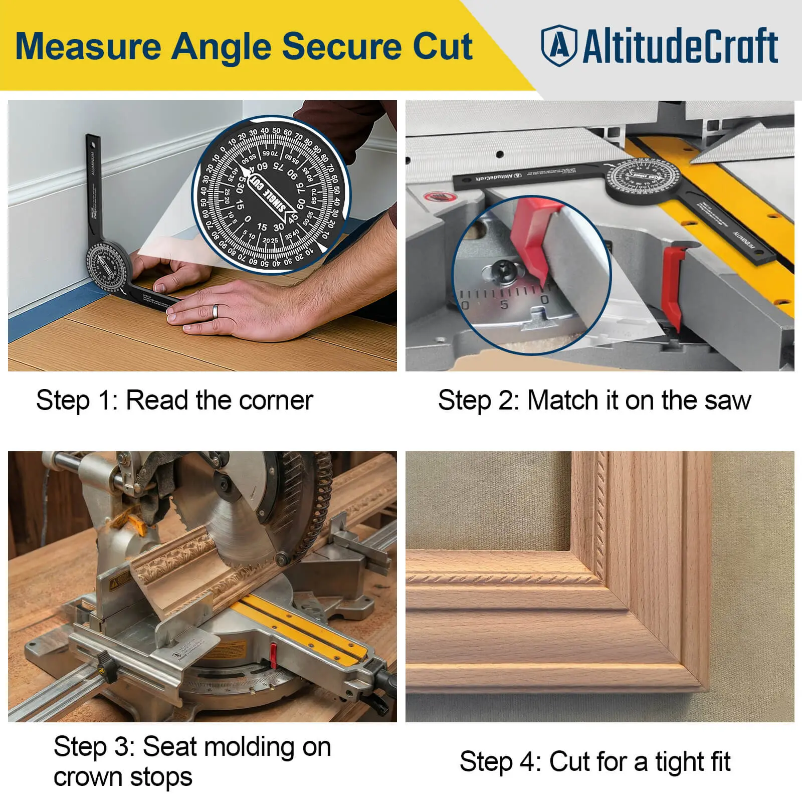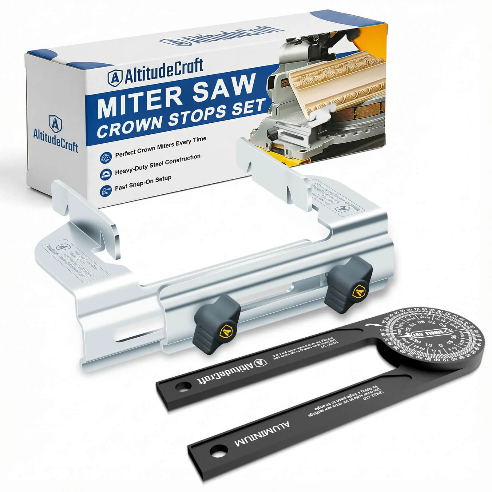 This combo includes crown stops and a 360° protractor. Measure angles, lock material, and cut clean lines—ideal for crown molding, trim, and framing projects.
