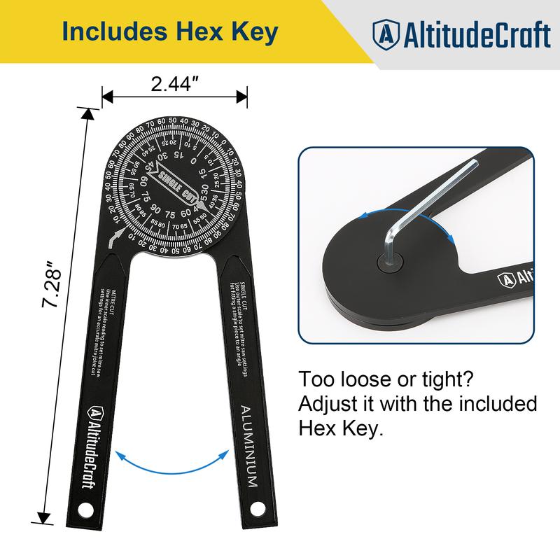 Upgrade your angle-measuring precision with the AltitudeCraft Aluminum Miter Saw Protractor, an essential tool for accurate miter and bevel cuts in woodworking, carpentry, and metalworking. Built for durability and engineered for smooth, exact measurements, this 7.28-inch angle finder helps professionals and DIYers get it right the first time.