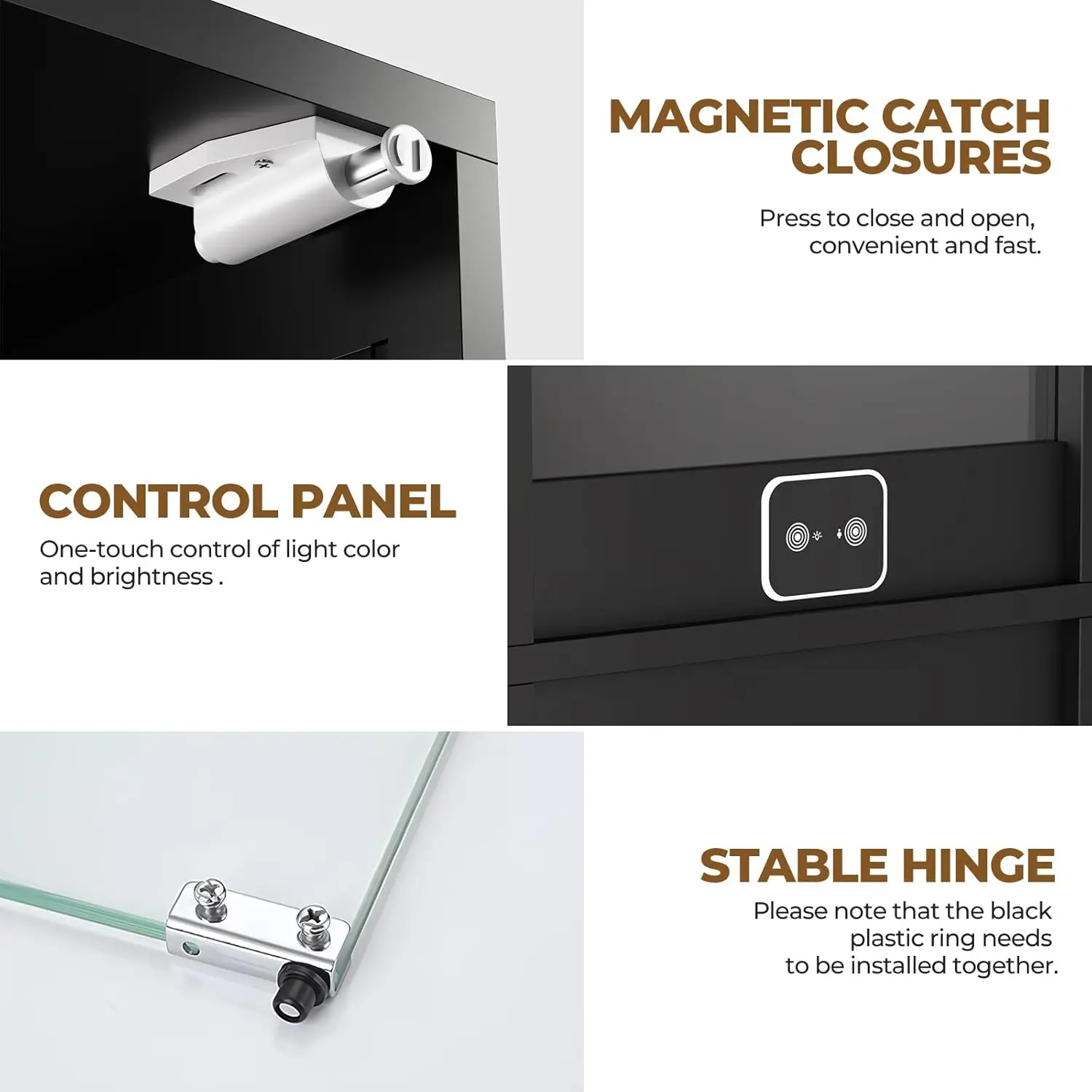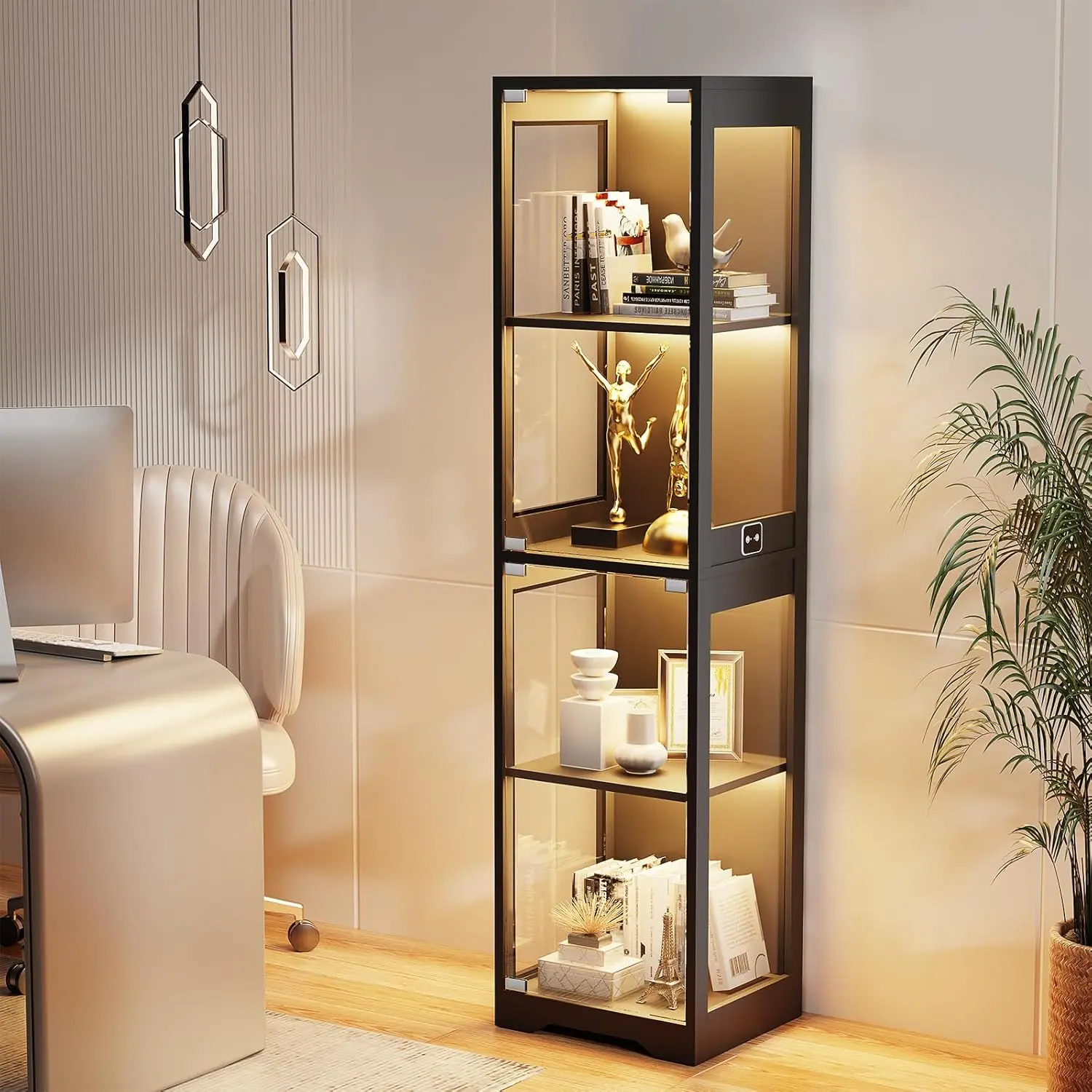 ·【Pop-Up Glass Doors】The pop-up glass door of this curio cabinet creates an unobstructed view of your collection, while the no-handle design adds sleek sophistication. High-definition glass with no distortion, no discoloration, fully displays the beauty of the collection.